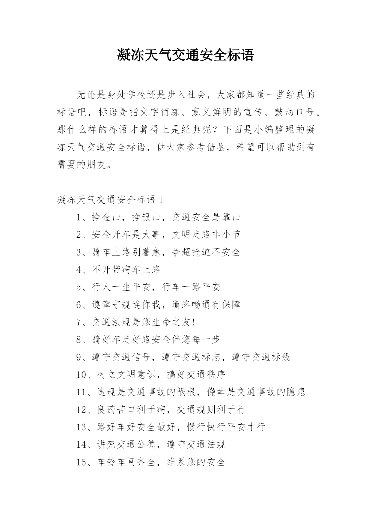 凝冻天气交通安全标语.docx