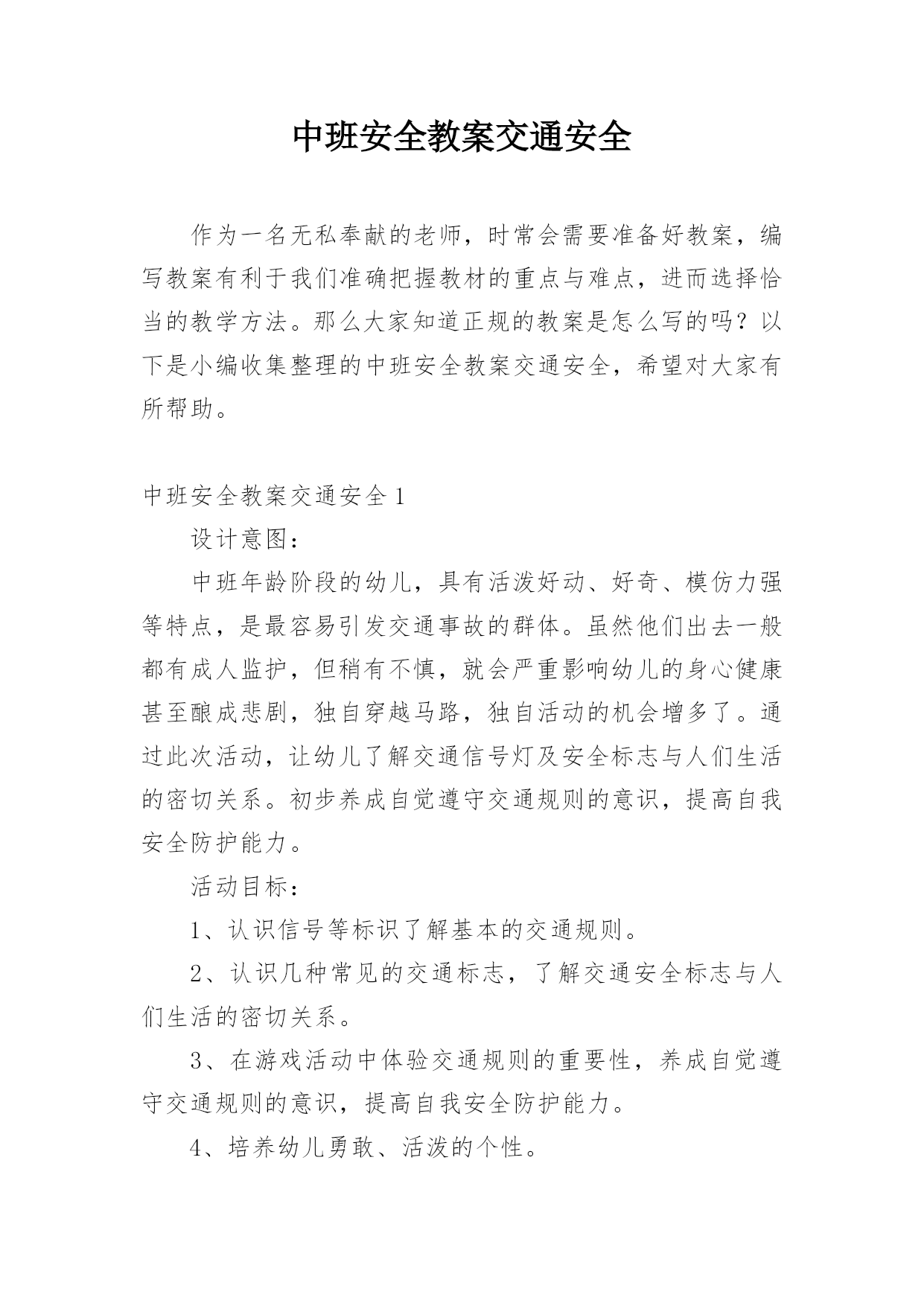 中班安全教案交通安全作为一名无私奉献的老师,时常会需要准备好教案,编写教案有利于我们准确把握教材的重点与难点,进而选择恰当的教学方法。那么大家知道正规的教案是怎么写的吗?以下是小编收集整理的中班安全教案交通安全,希望对大家有所帮助。中班安全教案交通安全1设计意图:中班年龄阶段的幼儿,具有活泼好动、好奇、模仿力强等特点,是最容易引发交通事故的群体。虽然他们出去一般都有成人监护,但稍有不慎,就会严重影响幼儿的身心健康甚至酿成悲剧,独自穿越马路,独自活动的机会增多了。通过此次活动,让幼儿了解交通信号灯及安全标志