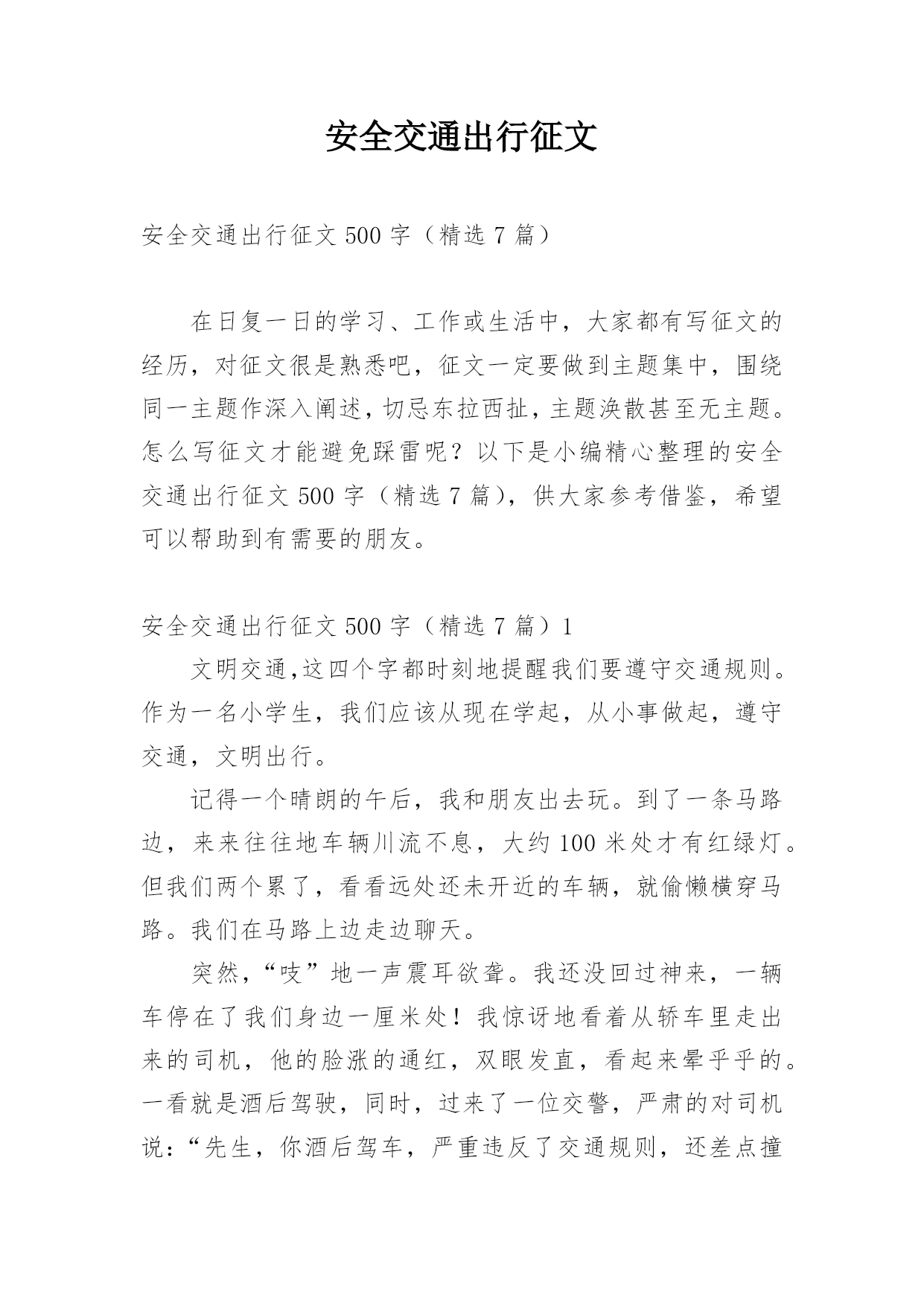 安全交通出行征文精编.docx
