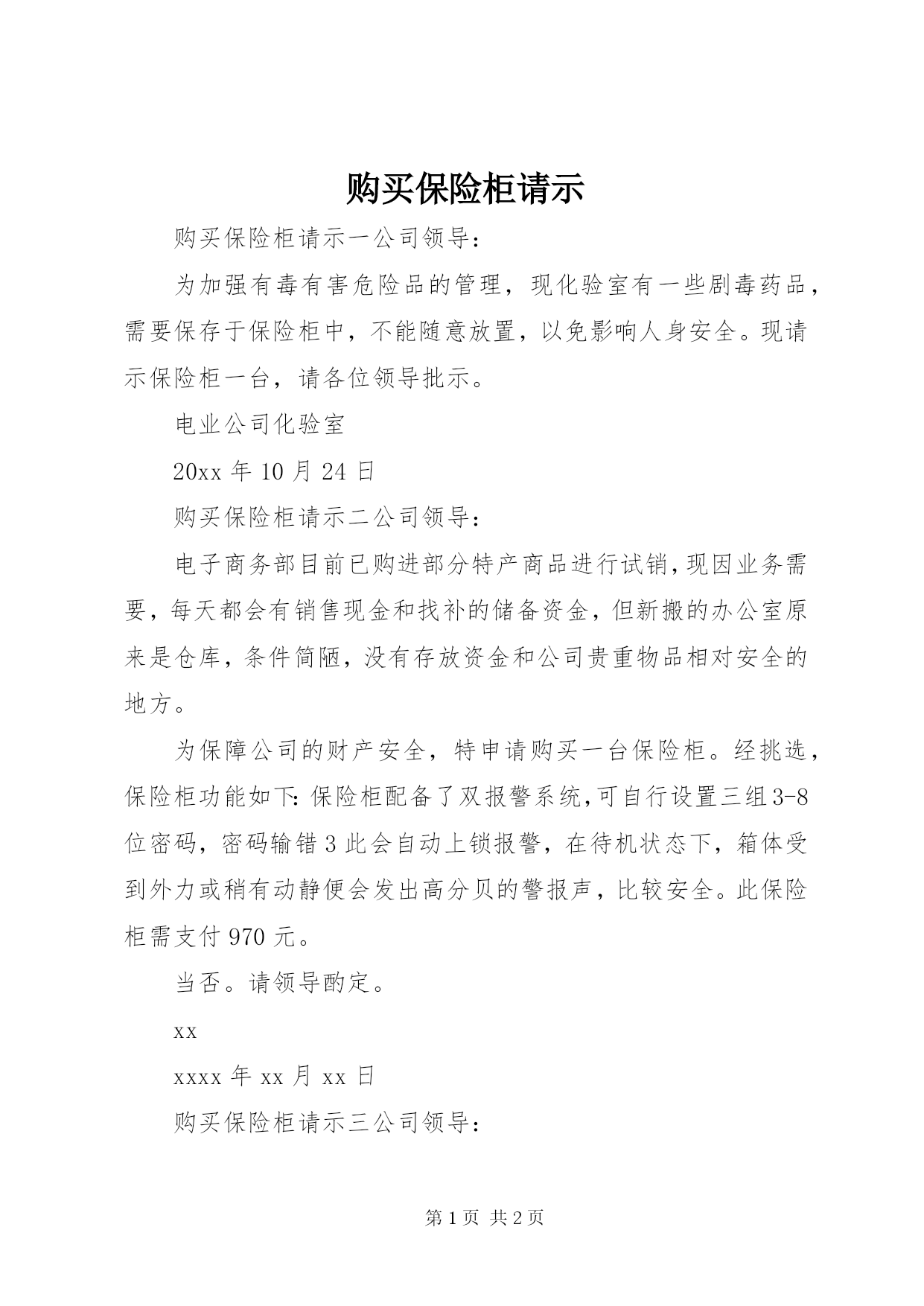第PAGE\*Arabic\*MERGEFORMAT2页共NUMPAGES\*MERGEFORMAT2页购买保险柜请示购买保险柜请示一公司领导:为加强有毒有害危险品的管理,现化验室有一些剧毒药品,需要保存于保险柜中,不能随意放置,以免影响人身安全。现请示保险柜一台,请各位领导批示。电业公司化验室20xx年10月24日购买保险柜请示二公司领导:电子商务部目前已购进部分特产商品进行试销,现因业务需要,每天都会有销售现金和找补的储备资金,但新搬的办公室原来是仓库,条件简陋,没有存放资金和公司贵重物品