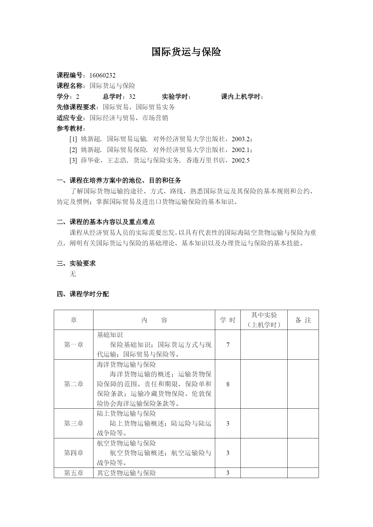 国际货运保险教学大纲.doc