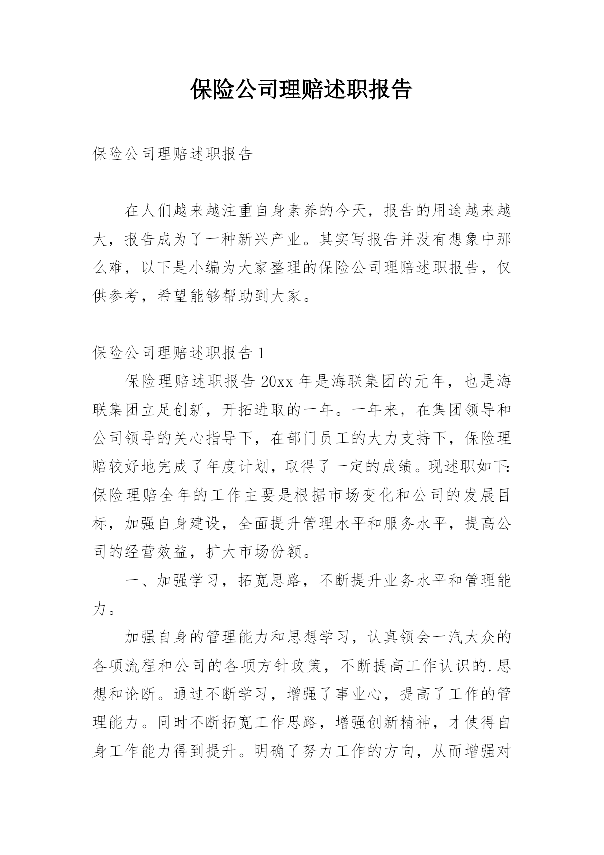 保险公司理赔述职报告保险公司理赔述职报告在人们越来越注重自身素养的今天,报告的用途越来越大,报告成为了一种新兴产业。其实写报告并没有想象中那么难,以下是小编为大家整理的保险公司理赔述职报告,仅供参考,希望能够帮助到大家。保险公司理赔述职报告1保险理赔述职报告20xx年是海联集团的元年,也是海联集团立足创新,开拓进取的一年。一年来,在集团领导和公司领导的关心指导下,在部门员工的大力支持下,保险理赔较好地完成了年度计划,取得了一定的成绩。现述职如下:保险理赔全年的工作主要是根据市场变化和公司的发展目标,加强自