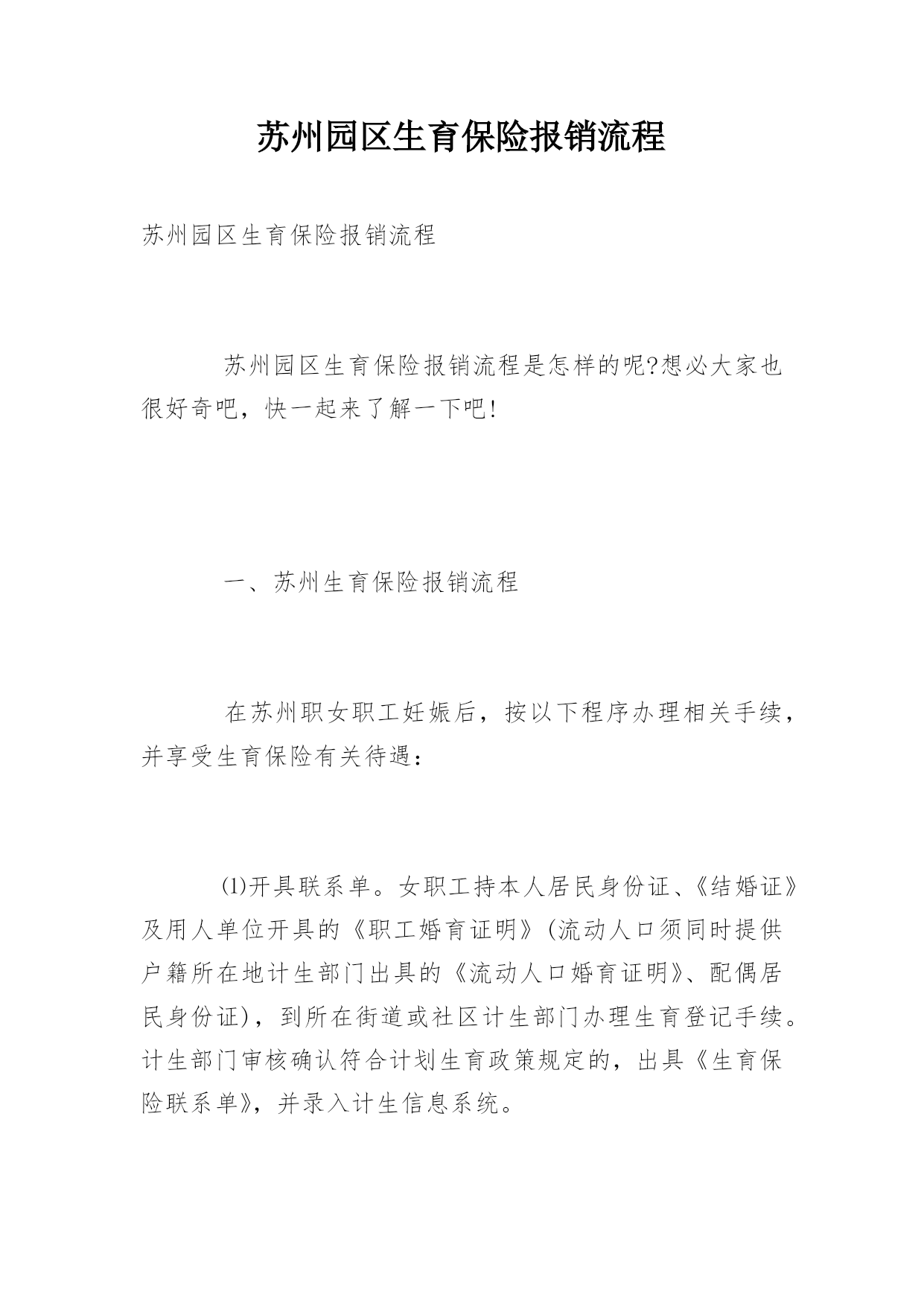 苏州园区生育保险报销流程苏州园区生育保险报销流程苏州园区生育保险报销流程是怎样的呢?想必大家也很好奇吧,快一起来了解一下吧!一、苏州生育保险报销流程在苏州职女职工妊娠后,按以下程序办理相关手续,并享受生育保险有关待遇:⑴开具联系单。女职工持本人居民身份证、《结婚证》及用人单位开具的《职工婚育证明》(流动人口须同时提供户籍所在地计生部门出具的《流动人口婚育证明》、配偶居民身份证),到所在街道或社区计生部门办理生育登记手续。计生部门审核确认符合计划生育政策规定的,出具《生育保险联系单》,并录入计生信息系统。&