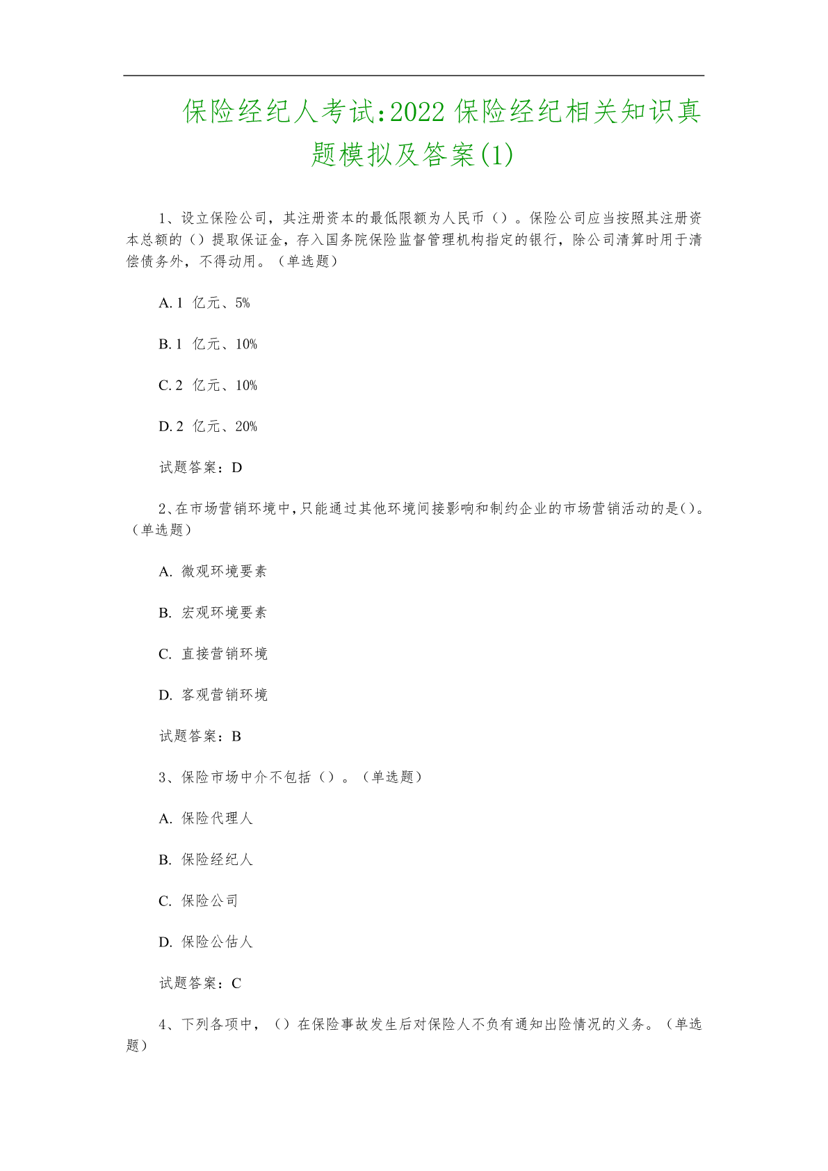 保险经纪人考试:2022保险经纪相关知识真题模拟及答案(1).pdf