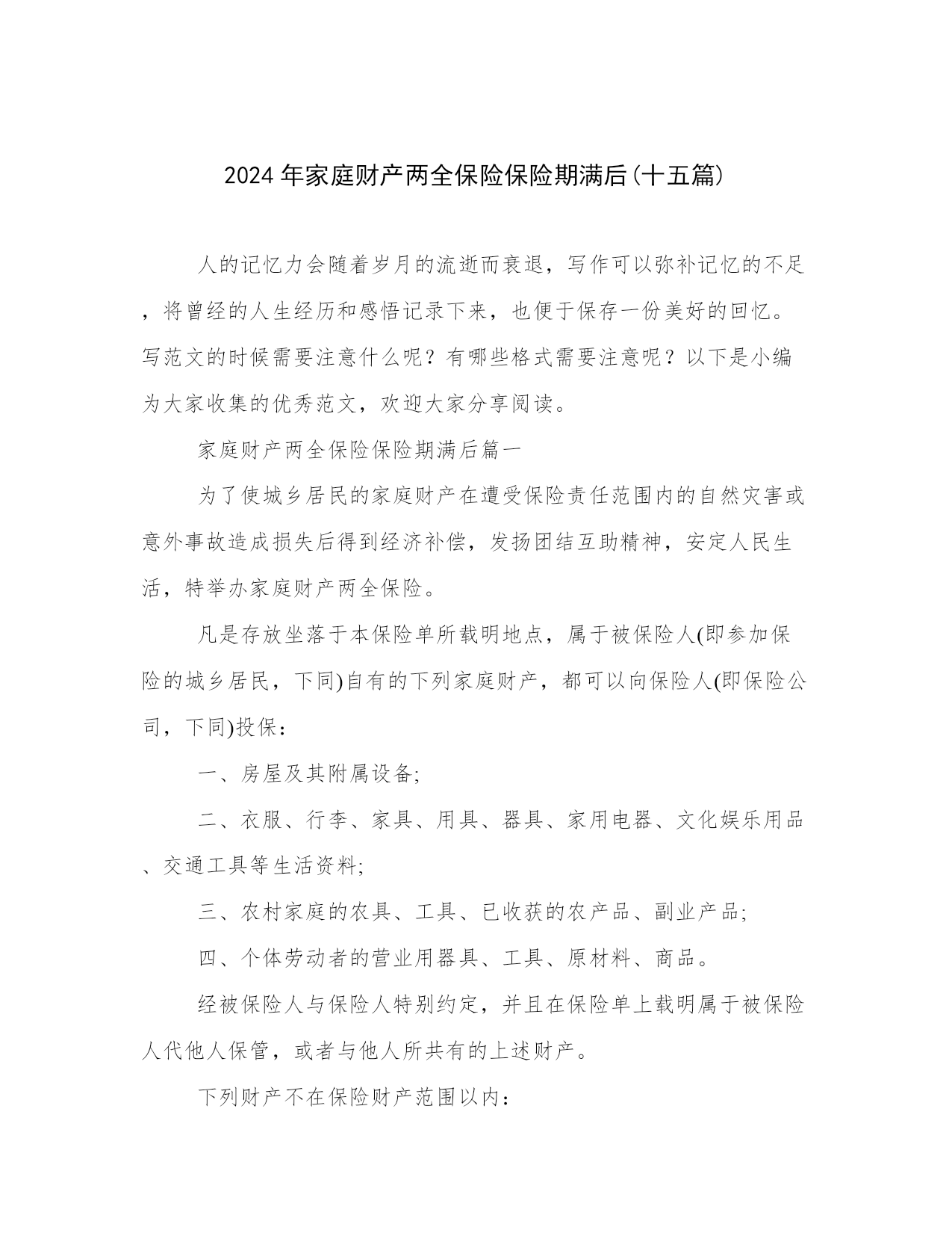2024年家庭财产两全保险保险期满后(十五篇).docx
