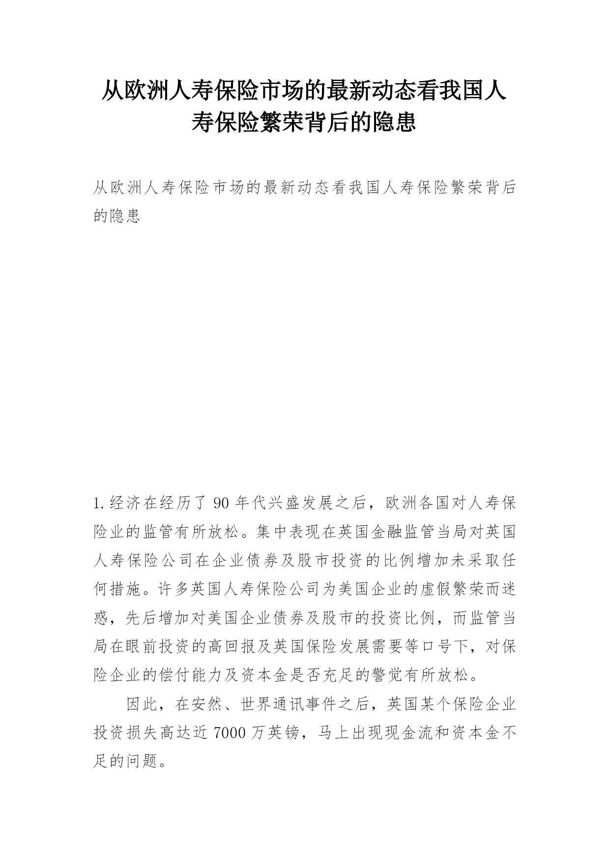从欧洲人寿保险市场的最新动态看我国人寿保险繁荣背后的隐患.docx