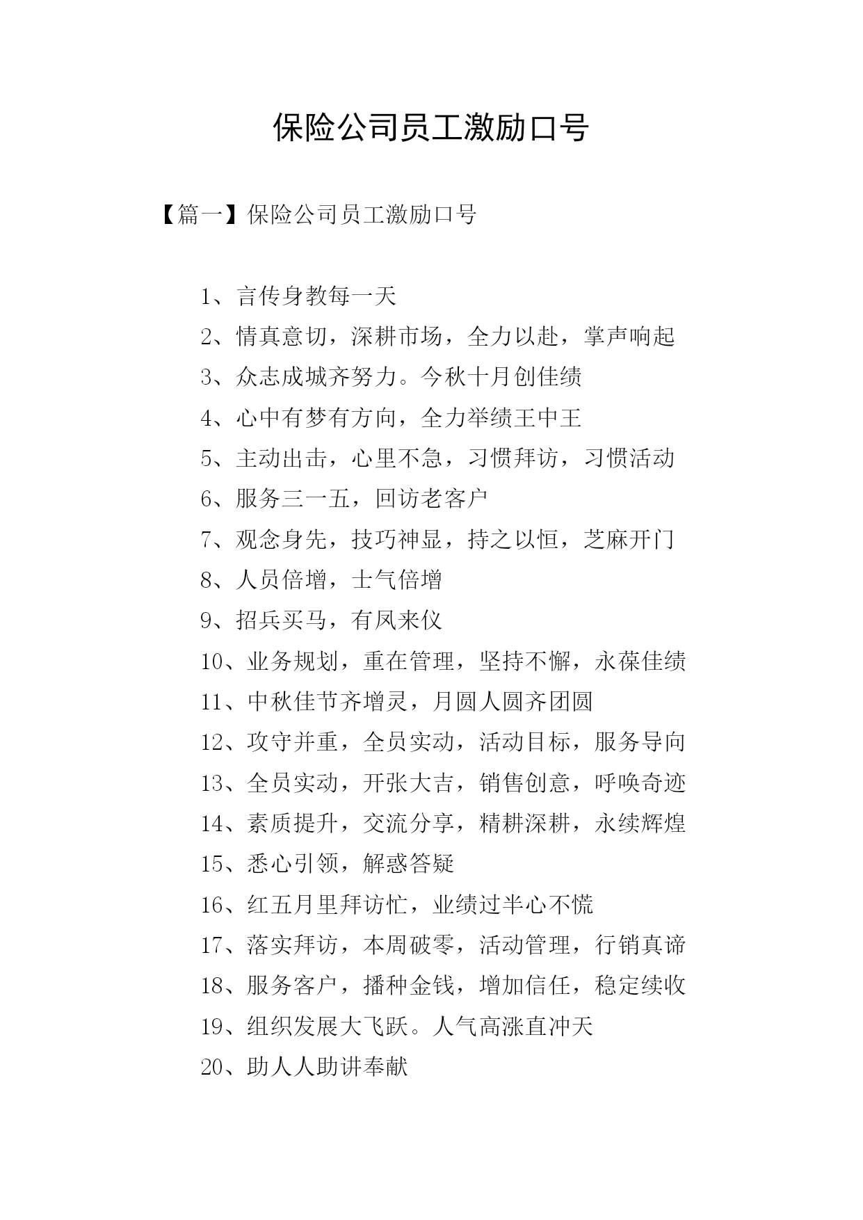 保险公司员工激励口号.doc