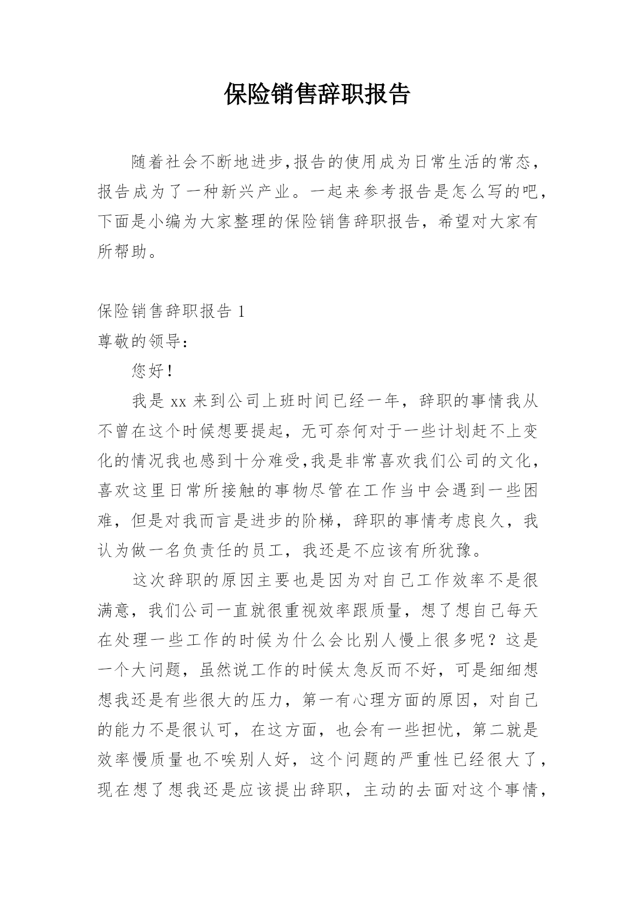 保险销售辞职报告随着社会不断地进步,报告的使用成为日常生活的常态,报告成为了一种新兴产业。一起来参考报告是怎么写的吧,下面是小编为大家整理的保险销售辞职报告,希望对大家有所帮助。保险销售辞职报告1尊敬的领导:您好!我是xx来到公司上班时间已经一年,辞职的事情我从不曾在这个时候想要提起,无可奈何对于一些计划赶不上变化的情况我也感到十分难受,我是非常喜欢我们公司的文化,喜欢这里日常所接触的事物尽管在工作当中会遇到一些困难,但是对我而言是进步的阶梯,辞职的事情考虑良久,我认为做一名负责任的员工,我还是不应该有所
