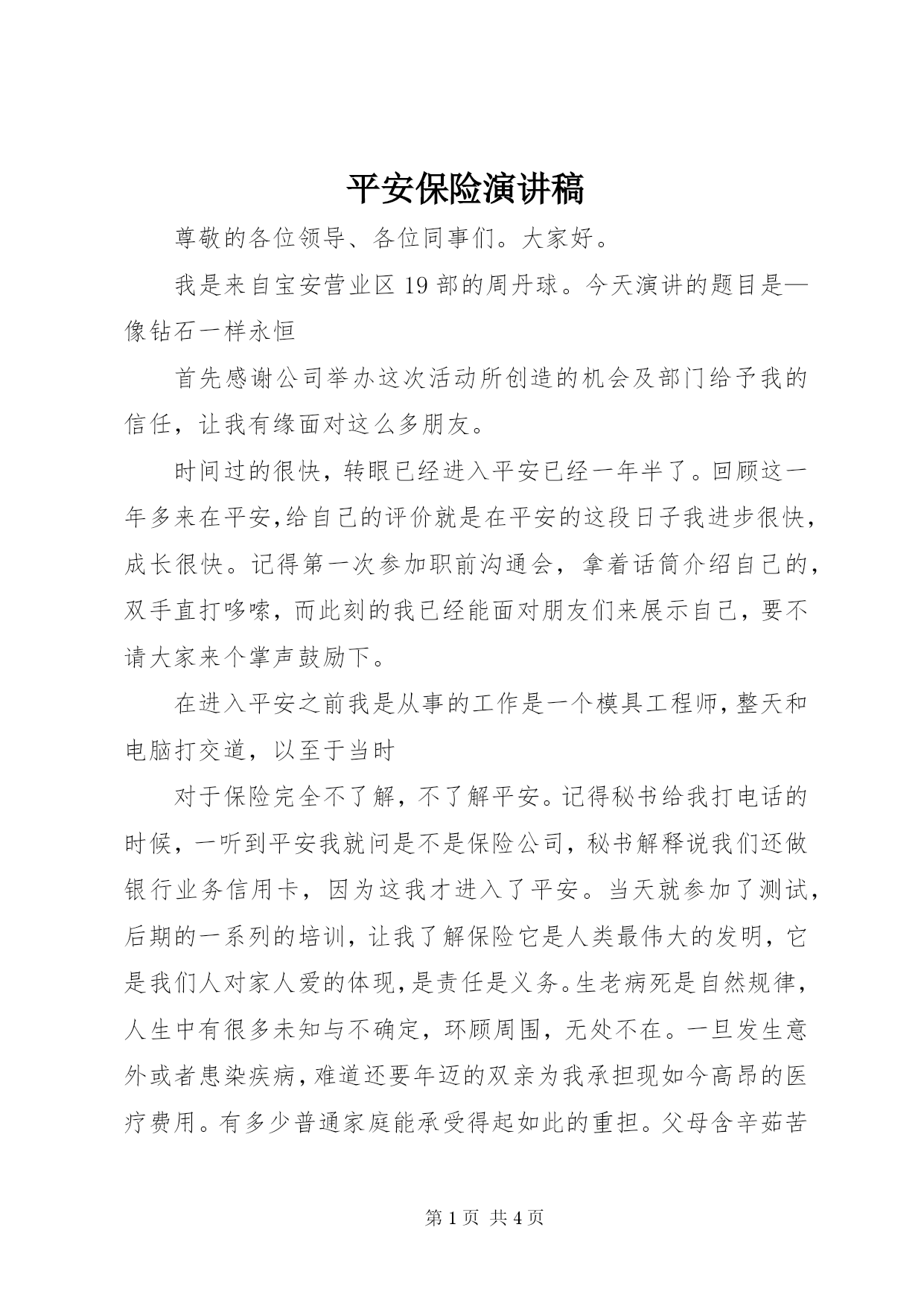 第PAGE\*Arabic\*MERGEFORMAT17页共NUMPAGES\*MERGEFORMAT17页平安保险演讲稿平安保险员工的演讲稿03年2月,一个小帅哥降临到我的身边,当孩子满月时,就有亲戚说,做份保险吧,什么叫保险。不知道,但别的孩子有,我的孩子也要有,一份带有平安字样的保险合同就这样与我第一次见面了,小宝宝在全家的关爱中健康成长关,,我也一如继往的两点一线的工作着......由于各自要照顾家庭,所以很长时间都没有和朋友联系了,朋友是什么,朋友就是多久不说话也不会觉得尴尬的人,得