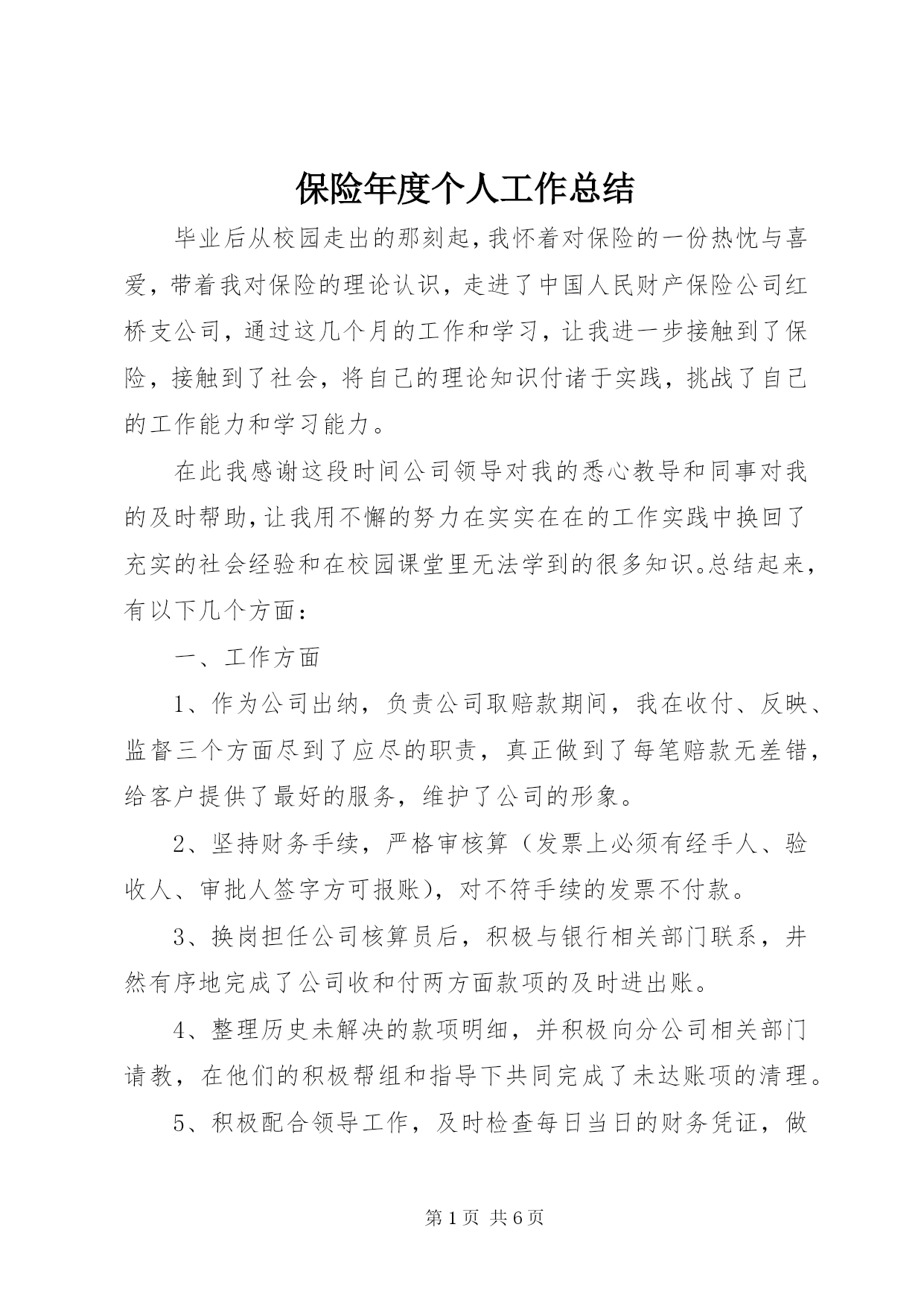第PAGE\*Arabic\*MERGEFORMAT6页共NUMPAGES\*MERGEFORMAT6页保险年度个人工作总结毕业后从校园走出的那刻起,我怀着对保险的一份热忱与喜爱,带着我对保险的理论认识,走进了中国人民财产保险公司红桥支公司,通过这几个月的工作和学习,让我进一步接触到了保险,接触到了社会,将自己的理论知识付诸于实践,挑战了自己的工作能力和学习能力。在此我感谢这段时间公司领导对我的悉心教导和同事对我的及时帮助,让我用不懈的努力在实实在在的工作实践中换回了充实的社会经验和在校园课堂