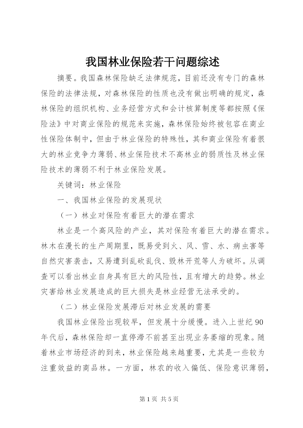 第PAGE\*Arabic\*MERGEFORMAT5页共NUMPAGES\*MERGEFORMAT5页我国林业保险若干问题综述摘要。我国森林保险缺乏法律规范,目前还没有专门的森林保险的法律法规,对森林保险的性质也没有做出明确的规定,森林保险的组织机构、业务经营方式和会计核算制度等都按照《保险法》中对商业保险的规范来实施,森林保险始终被包容在商业性保险体制中,但由于林业保险的特殊性,其和商业保险有着很大的林业竞争力薄弱、林业保险技术不高林业的弱质性及林业保险技术的薄弱不利于林业保险发展。关键词