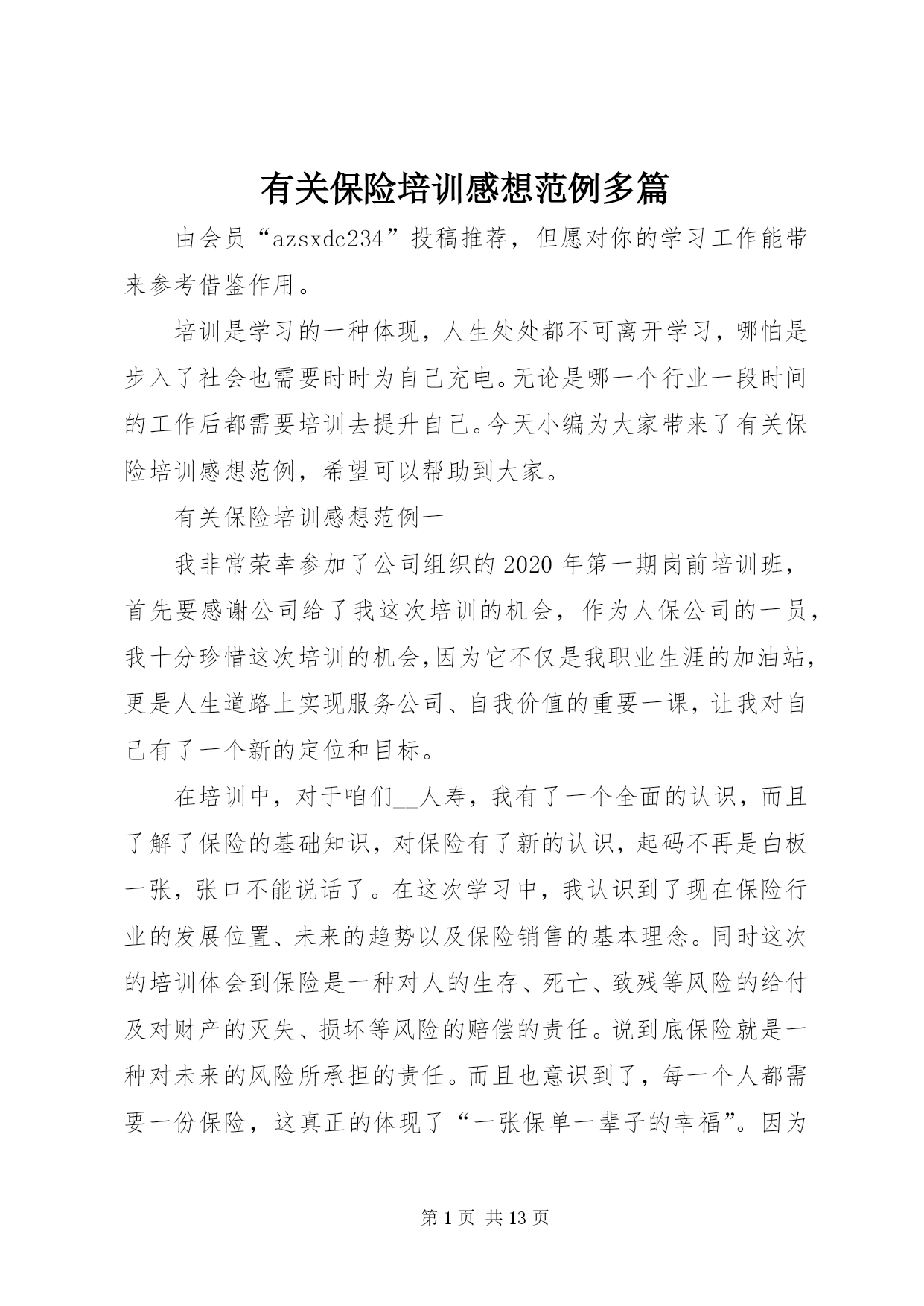 第PAGE\*Arabic\*MERGEFORMAT13页共NUMPAGES\*MERGEFORMAT13页有关保险培训感想范例多篇由会员“azsxdc234”投稿推荐,但愿对你的学习工作能带来参考借鉴作用。培训是学习的一种体现,人生处处都不可离开学习,哪怕是步入了社会也需要时时为自己充电。无论是哪一个行业一段时间的工作后都需要培训去提升自己。今天小编为大家带来了有关保险培训感想范例,希望可以帮助到大家。有关保险培训感想范例一我非常荣幸参加了公司组织的2020年第一期岗前培训班,首先要感谢公司