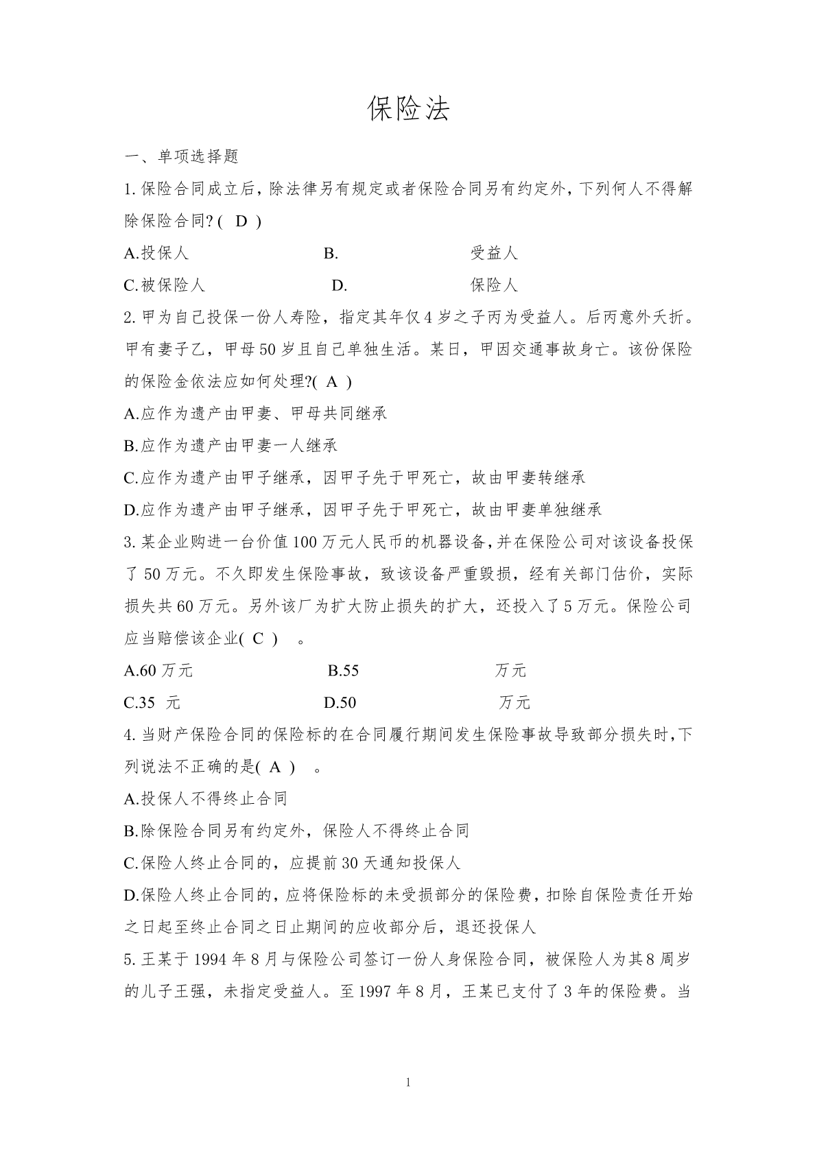 保险法试题库汇总.pdf