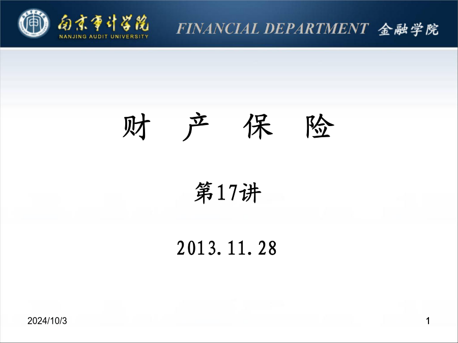 1第8章责任保险二、责任保险的发展历程国内:三、责任保险的含义:责任保险是以被保险人依法对第三者应承担的民事损害赔偿责任或经过特别约定的合同责任为承保对象的保险。四、责任保险的种类(按承保方式分)①承保独立责任的责任保险:公众责任保险产品责任保险雇主责任保险职业责任保险②作为财产保险的附加险:运输工具保险的第三者责任保险工程保险的第三者责任保险船舶保险的第三者责任保险六、责任保险的特点七、责任保险条款的主要内容4.责任免除7.责任保险的保险费率与保险费①规定每次事故的赔偿限额,但不规定累计限额