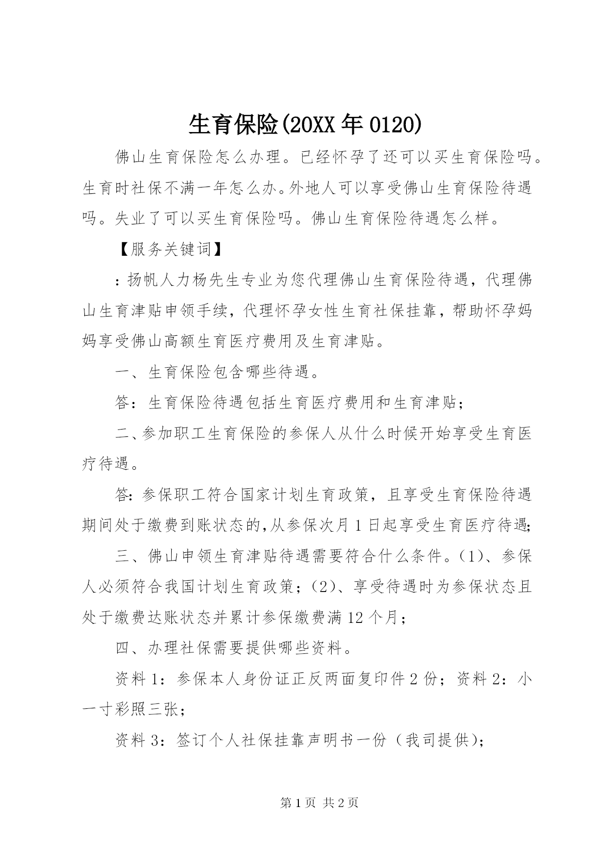 第PAGE\*Arabic\*MERGEFORMAT2页共NUMPAGES\*MERGEFORMAT2页生育保险(20XX年0120)佛山生育保险怎么办理。已经怀孕了还可以买生育保险吗。生育时社保不满一年怎么办。外地人可以享受佛山生育保险待遇吗。失业了可以买生育保险吗。佛山生育保险待遇怎么样。【服务关键词】:扬帆人力杨先生专业为您代理佛山生育保险待遇,代理佛山生育津贴申领手续,代理怀孕女性生育社保挂靠,帮助怀孕妈妈享受佛山高额生育医疗费用及生育津贴。一、生育保险包含哪些待遇。答:生育保险待遇包