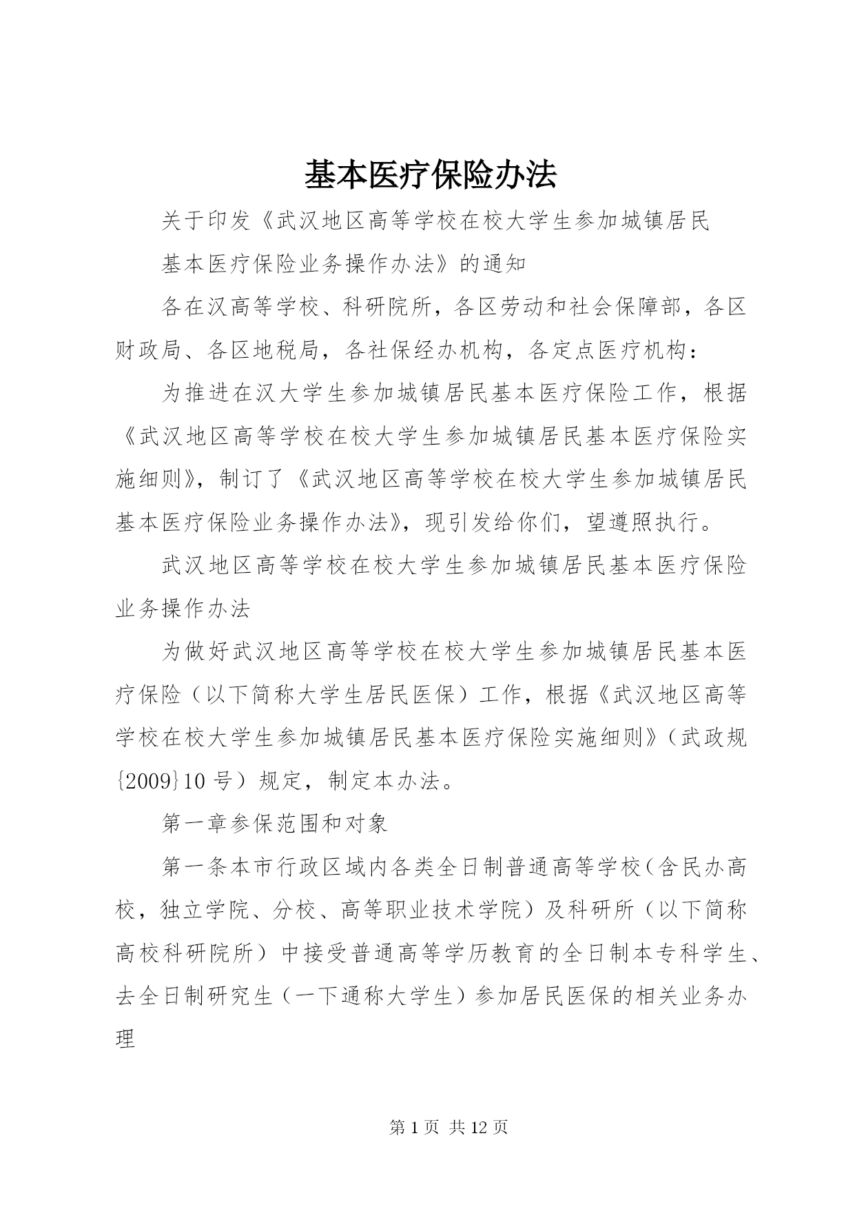 第PAGE\*Arabic\*MERGEFORMAT12页共NUMPAGES\*MERGEFORMAT12页基本医疗保险办法关于印发《武汉地区高等学校在校大学生参加城镇居民基本医疗保险业务操作办法》的通知各在汉高等学校、科研院所,各区劳动和社会保障部,各区财政局、各区地税局,各社保经办机构,各定点医疗机构:为推进在汉大学生参加城镇居民基本医疗保险工作,根据《武汉地区高等学校在校大学生参加城镇居民基本医疗保险实施细则》,制订了《武汉地区高等学校在校大学生参加城镇居民基本医疗保险业务操作办法》,现