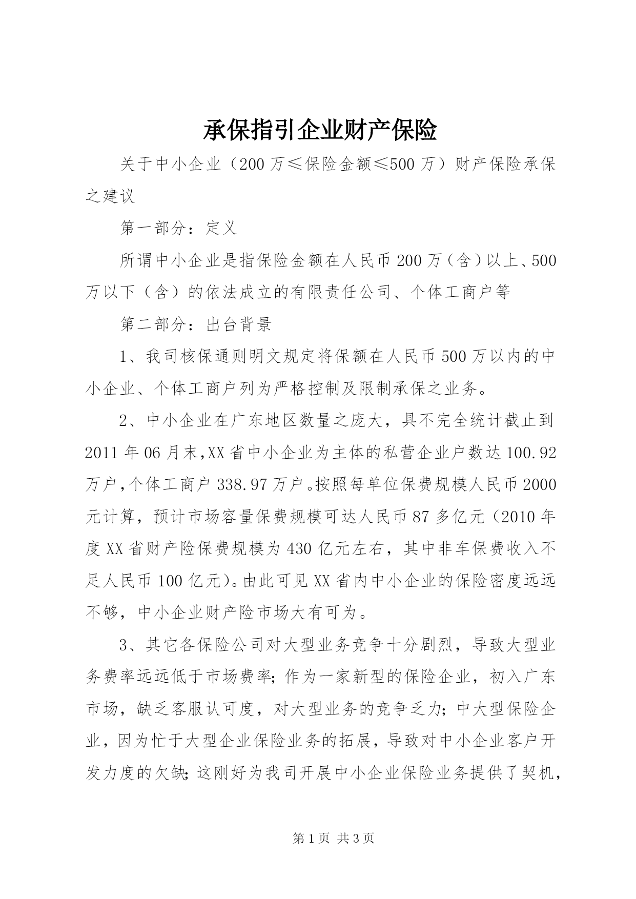 第PAGE\*Arabic\*MERGEFORMAT3页共NUMPAGES\*MERGEFORMAT3页承保指引企业财产保险关于中小企业(200万≤保险金额≤500万)财产保险承保之建议第一部分:定义所谓中小企业是指保险金额在人民币200万(含)以上、500万以下(含)的依法成立的有限责任公司、个体工商户等第二部分:出台背景1、我司核保通则明文规定将保额在人民币500万以内的中小企业、个体工商户列为严格控制及限制承保之业务。2、中小企业在广东地区数量之庞大,具不完全统计截止到2011年06月末
