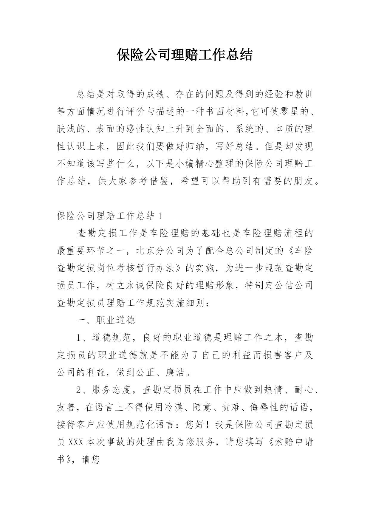 保险公司理赔工作总结总结是对取得的成绩、存在的问题及得到的经验和教训等方面情况进行评价与描述的一种书面材料,它可使零星的、肤浅的、表面的感性认知上升到全面的、系统的、本质的理性认识上来,因此我们要做好归纳,写好总结。但是却发现不知道该写些什么,以下是小编精心整理的保险公司理赔工作总结,供大家参考借鉴,希望可以帮助到有需要的朋友。保险公司理赔工作总结1查勘定损工作是车险理赔的基础也是车险理赔流程的最重要环节之一,北京分公司为了配合总公司制定的《车险查勘定损岗位考核暂行办法》的实施,为进一步规范查勘定损员工作