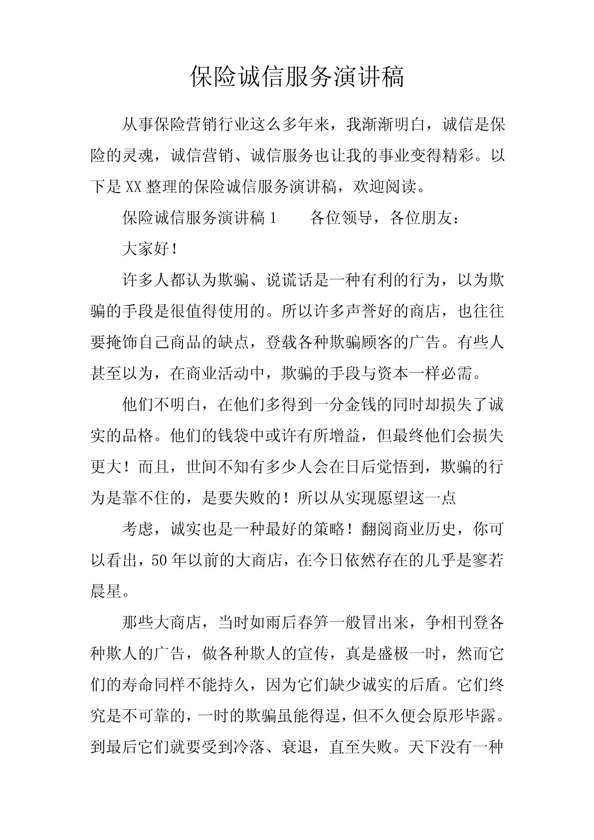 保险诚信服务演讲稿从事保险营销行业这么多年来,我渐渐明白,诚信是保险的灵魂,诚信营销、诚信服务也让我的事业变得精彩。以下是XX整理的保险诚信服务演讲稿,欢迎阅读。保险诚信服务演讲稿1各位领导,各位朋友:大家好!许多人都认为欺骗、说谎话是一种有利的行为,以为欺骗的手段是很值得使用的。所以许多声誉好的商店,也往往要掩饰自己商品的缺点,登载各种欺骗顾客的广告。有些人甚至以为,在商业活动中,欺骗的手段与资本一样必需。他们不明白,在他们多得到一分金钱的同时却损失了诚实的品格。他们的钱袋中或许有所增益,但最终他们会损