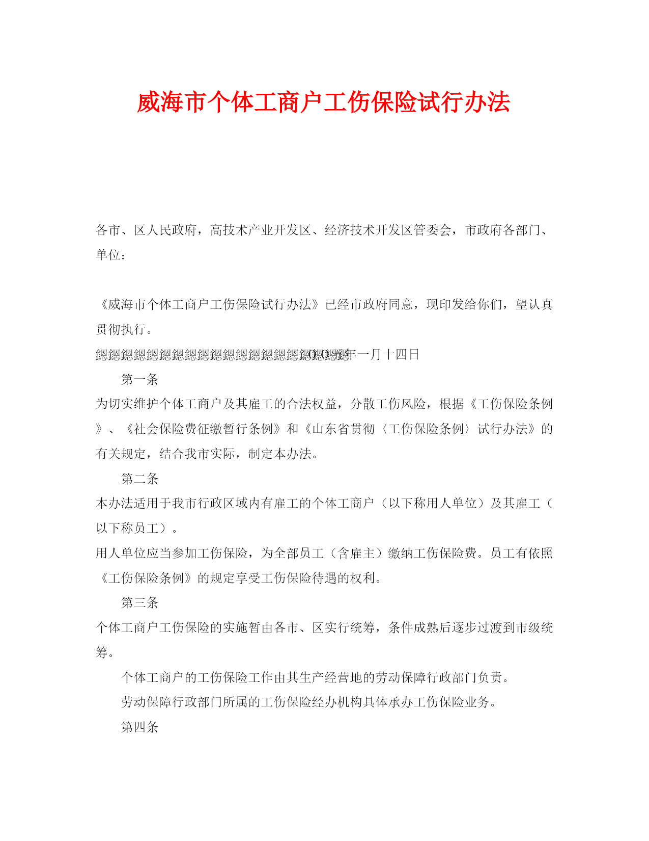 【精编】《工伤保险》之威海市个体工商户工伤保险试行办法.docx