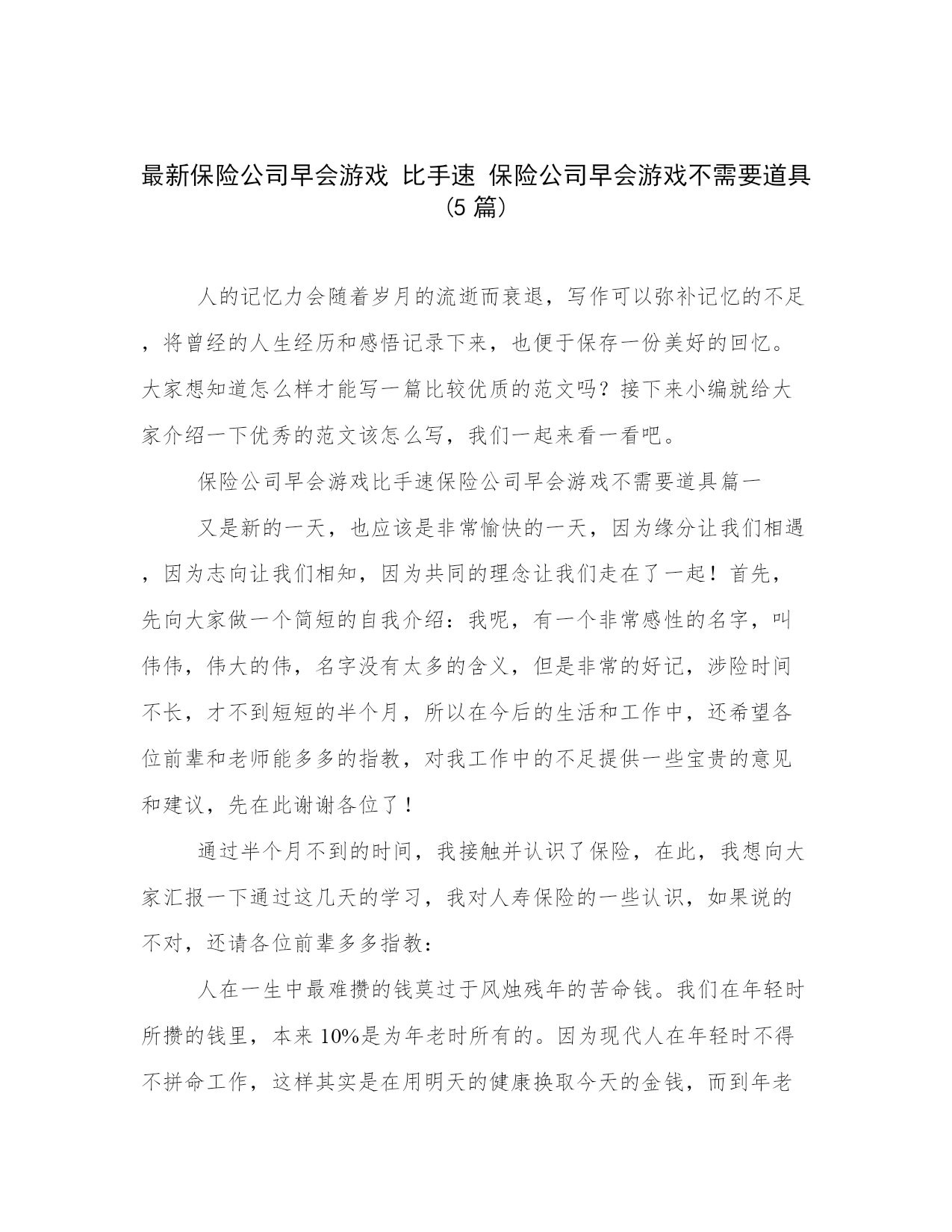 最新保险公司早会游戏 比手速 保险公司早会游戏不需要道具(5篇).docx