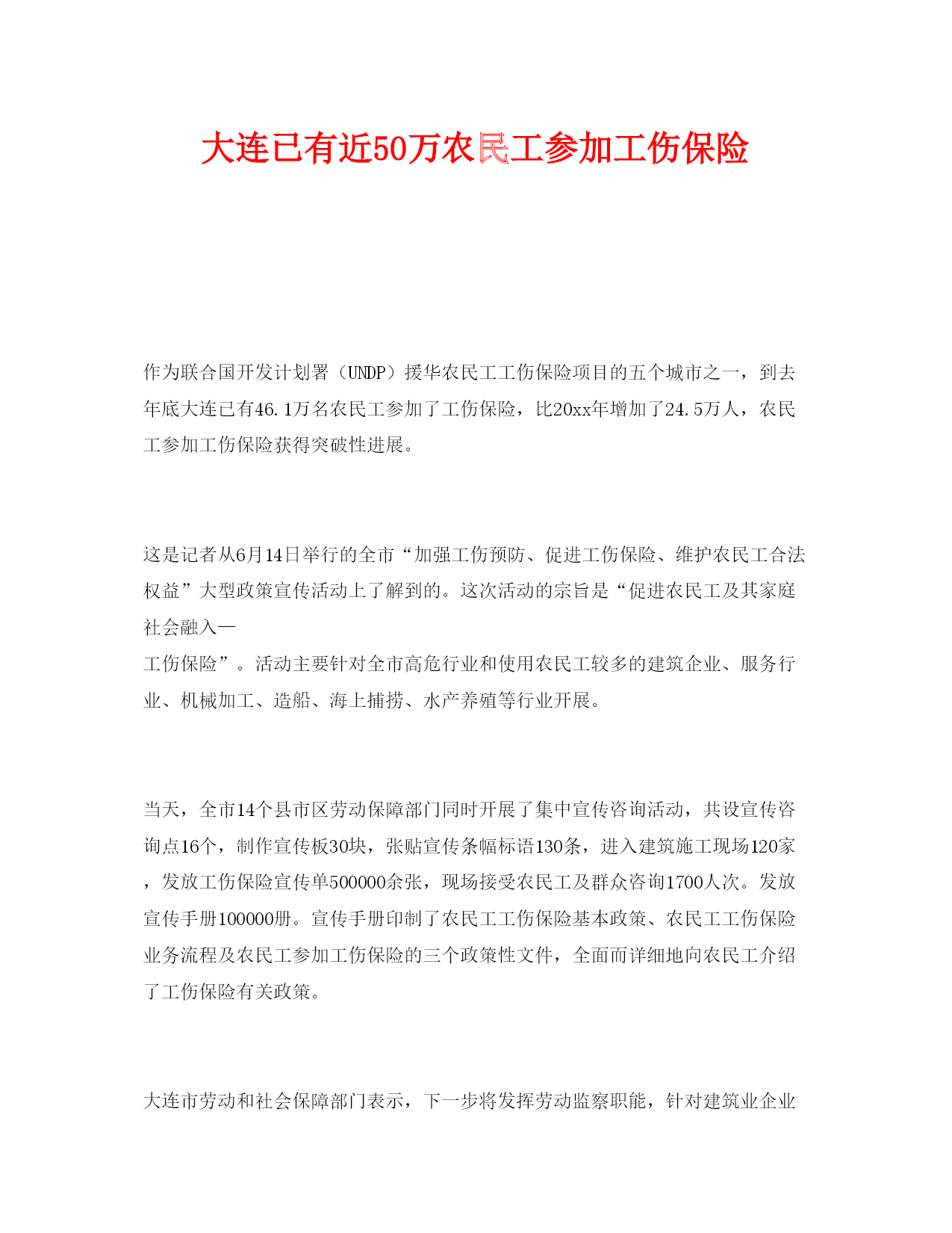 【精编】《工伤保险》之大连已有近50万农民工参加工伤保险.docx