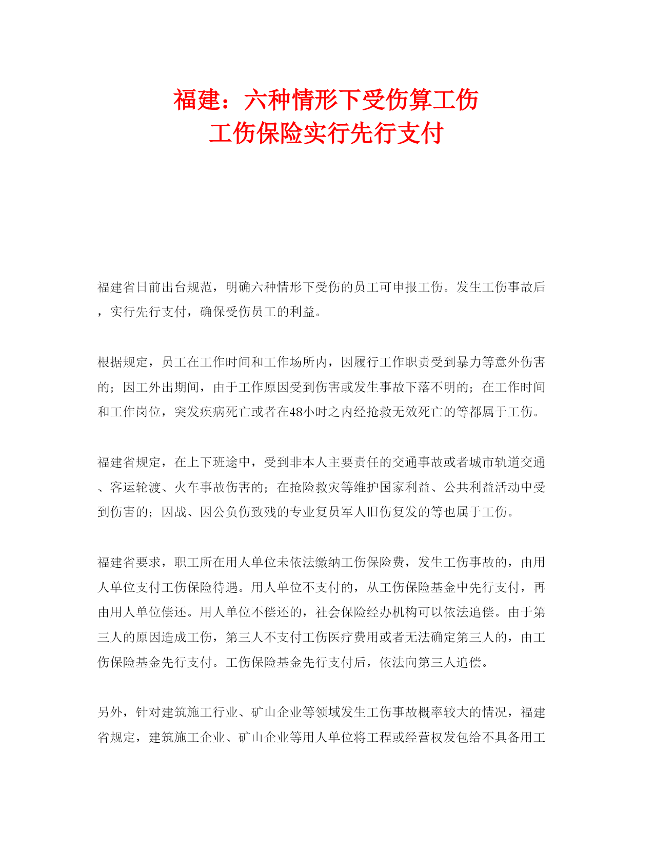 2022《工伤保险》之福建六种情形下受伤算工伤工伤保险实行先行支付.docx