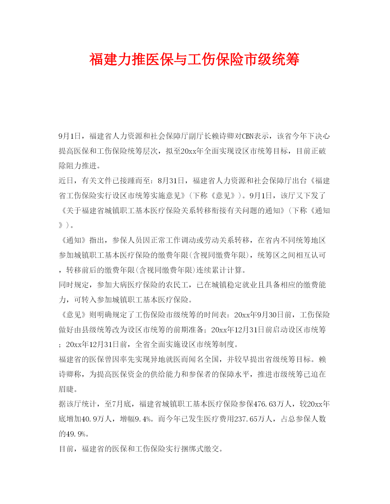 【精编】《工伤保险》之福建力推医保与工伤保险市级统筹.docx
