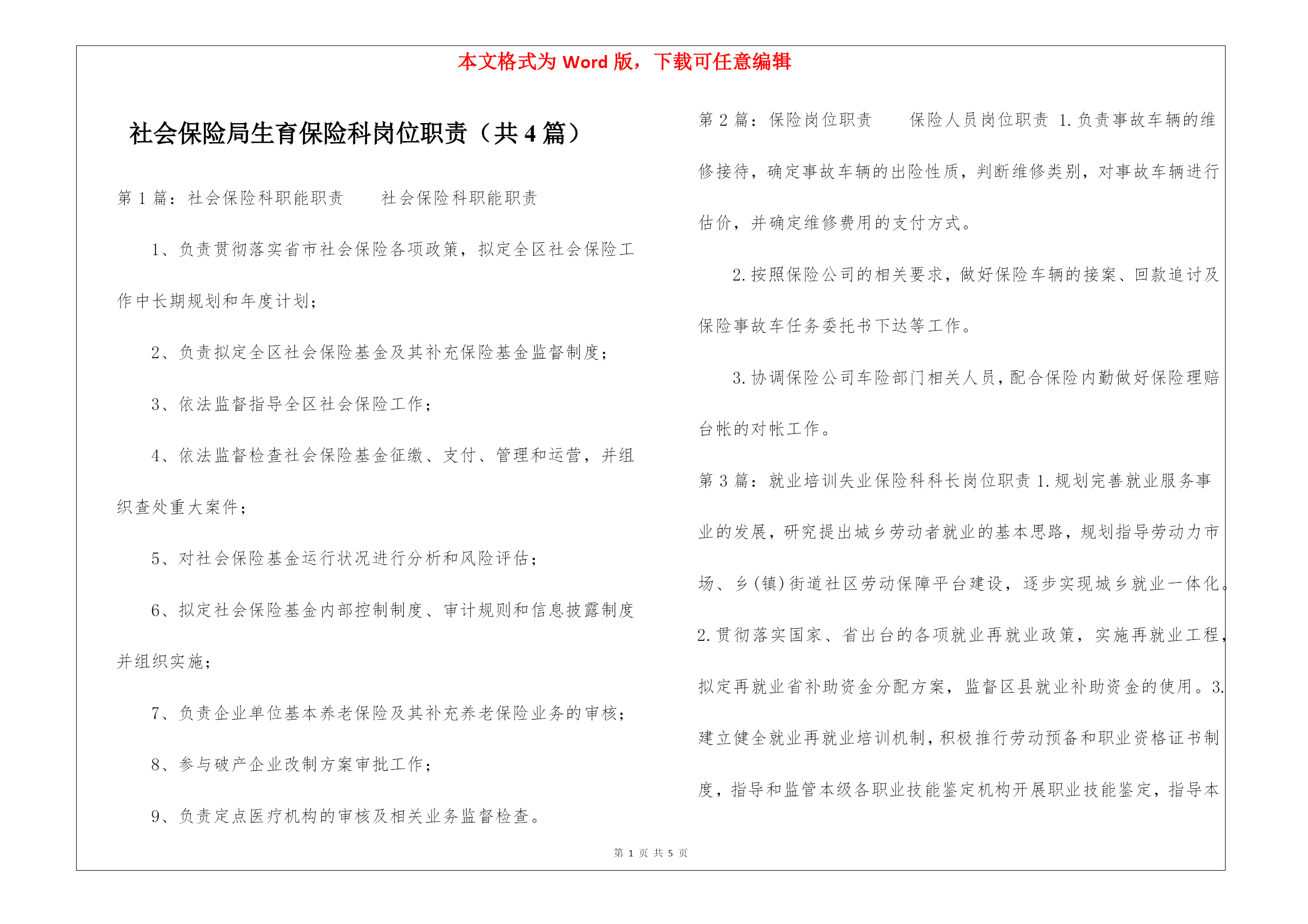 社会保险局生育保险科岗位职责(共4篇)-.docx