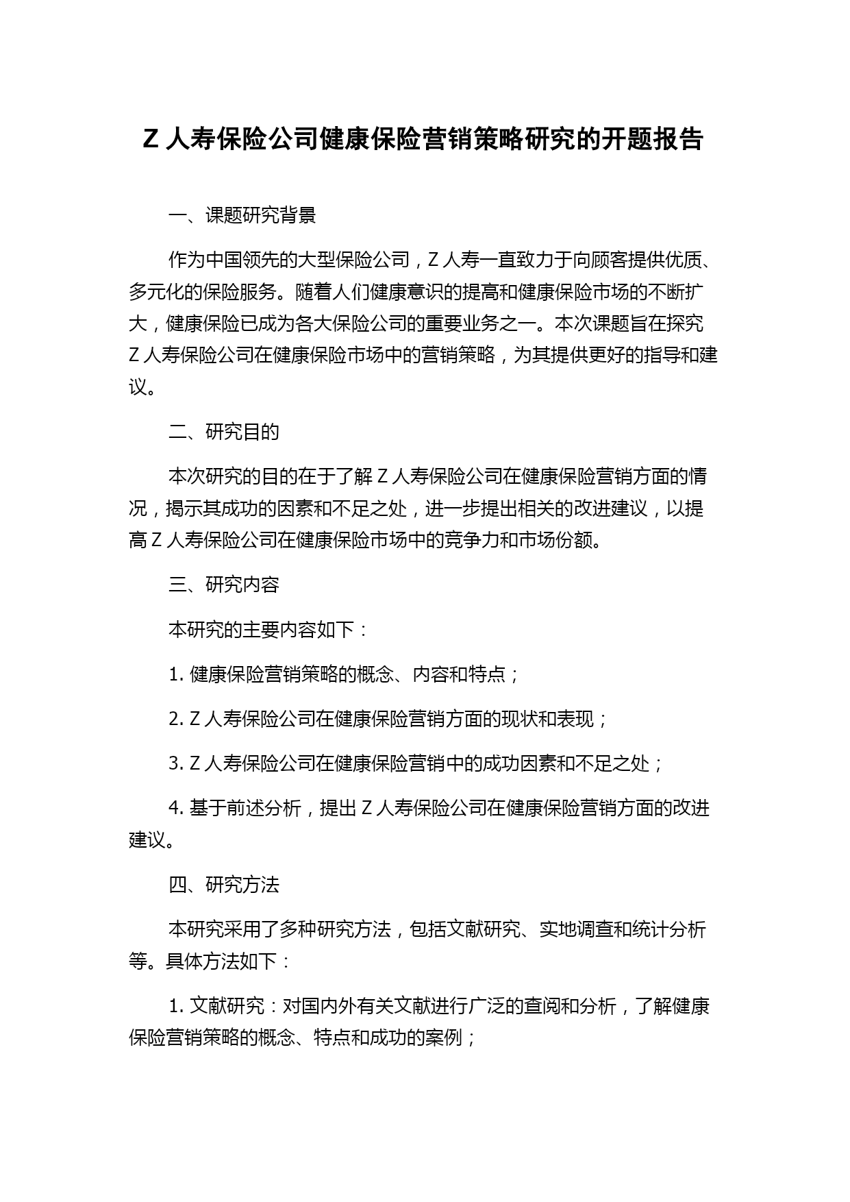 Z人寿保险公司健康保险营销策略研究的开题报告.docx