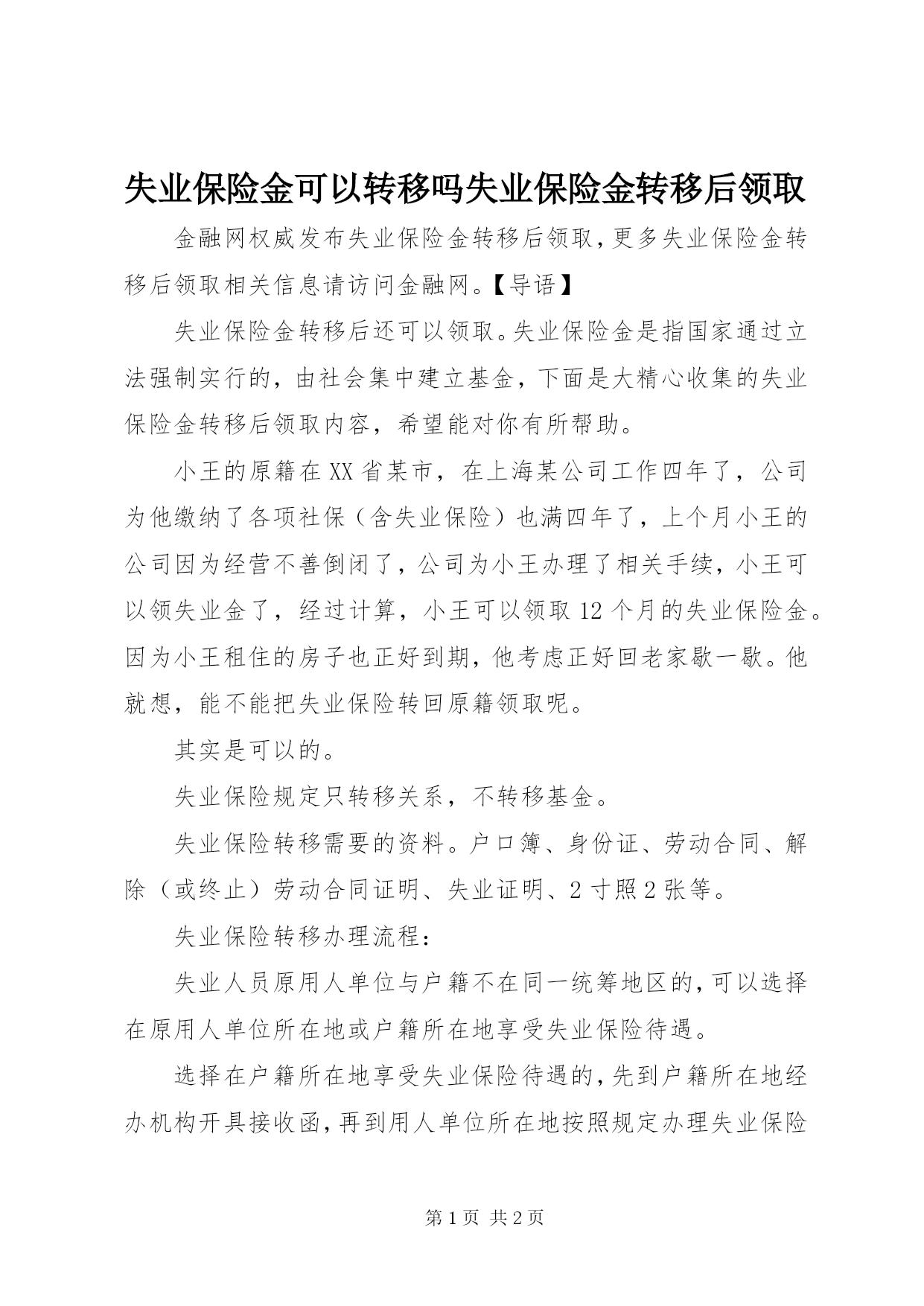 失业保险金可以转移吗失业保险金转移后领取.docx