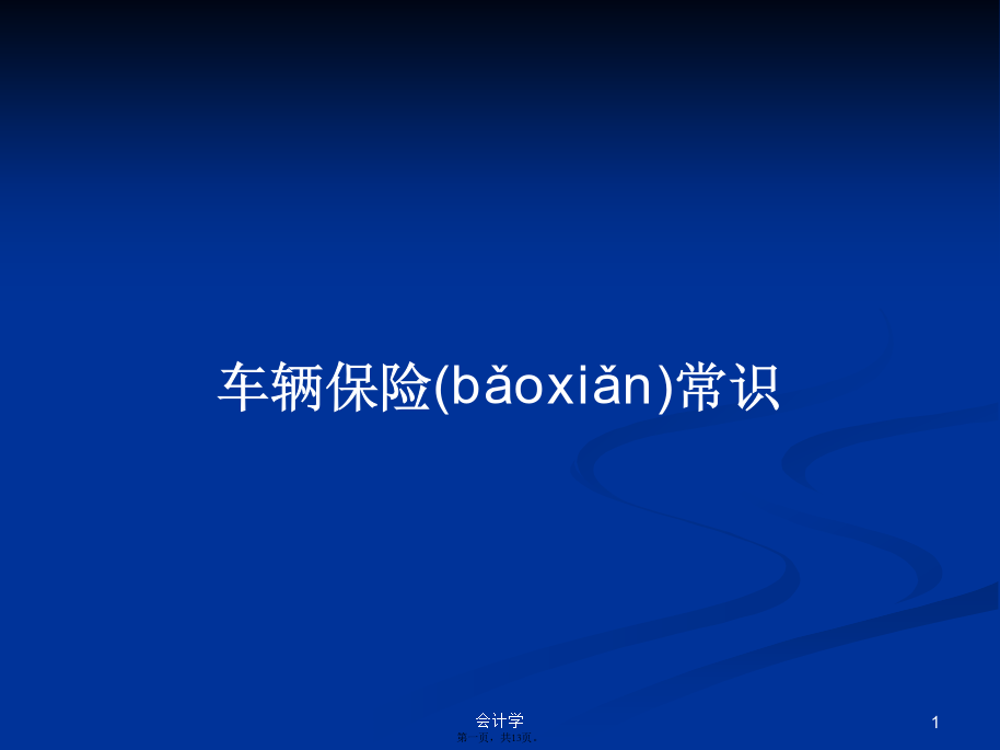 会计学车辆保险常识投保报案事故现场查勘保险公司(bǎoxiǎnɡōnɡsī)事故索赔单证一览表盗抢险索赔(suǒpéi)单证一览表保险车辆(chēliàng)出险后怎么办?保险车辆(chēliàng)出险后怎么办?索赔(suǒpéi)单证的几点说明发生人身伤害(shānghài)的几点说明谢谢(xièxie)大家!