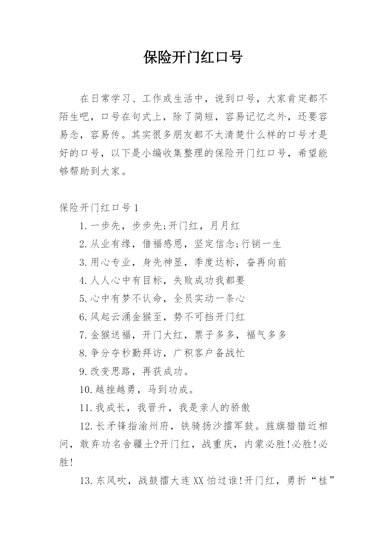 保险开门红口号.docx