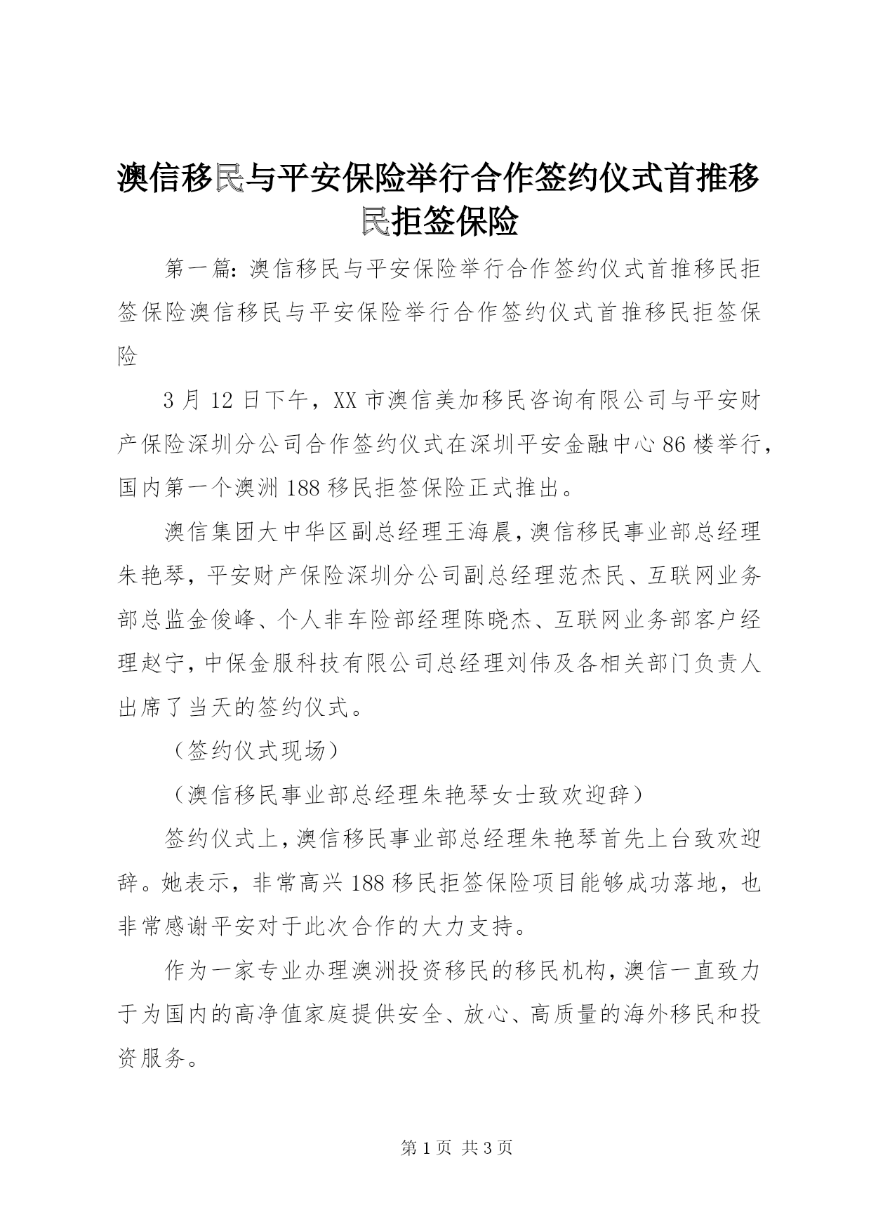 澳信移民与平安保险举行合作签约仪式首推移民拒签保险.docx