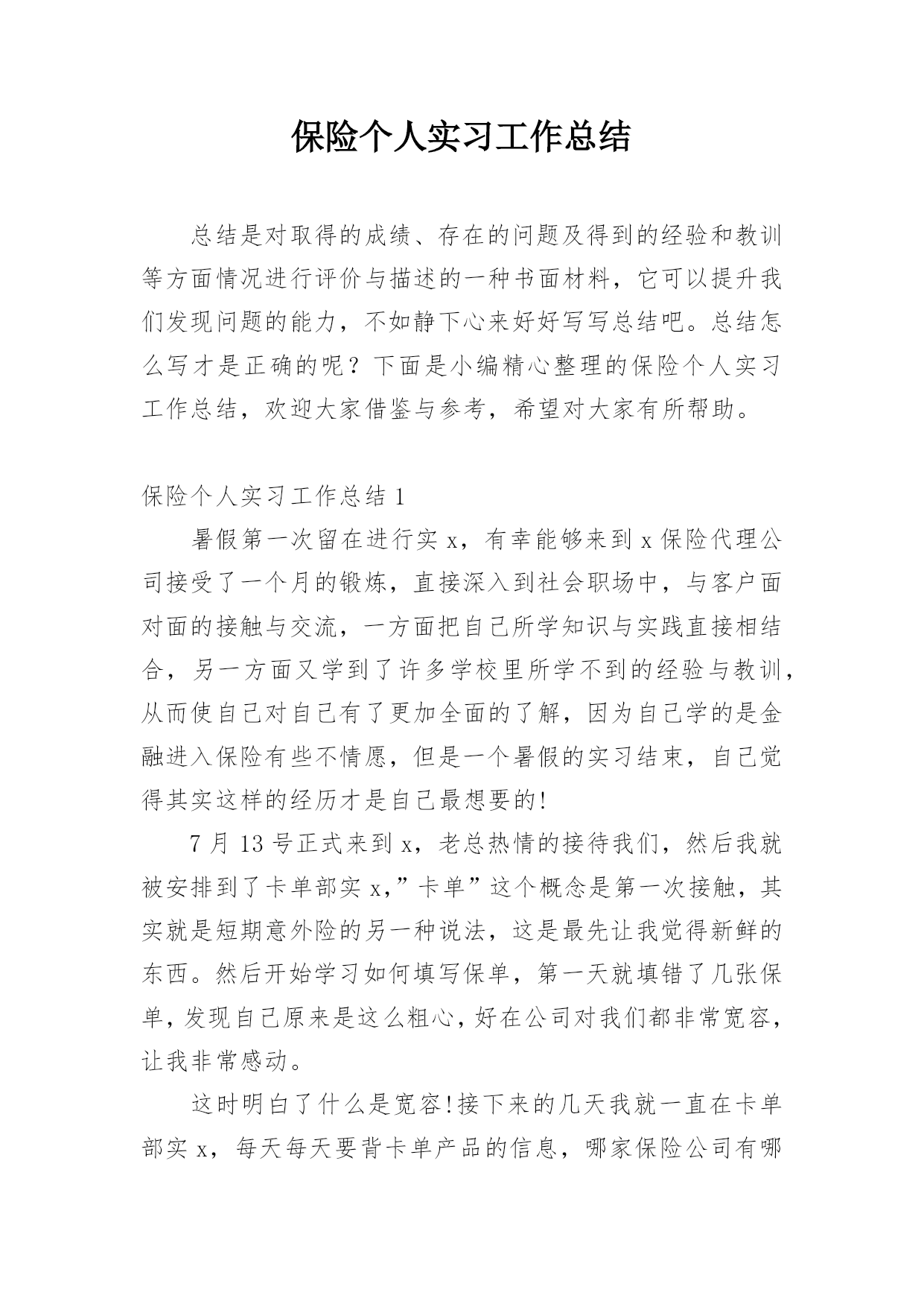 保险个人实习工作总结.docx