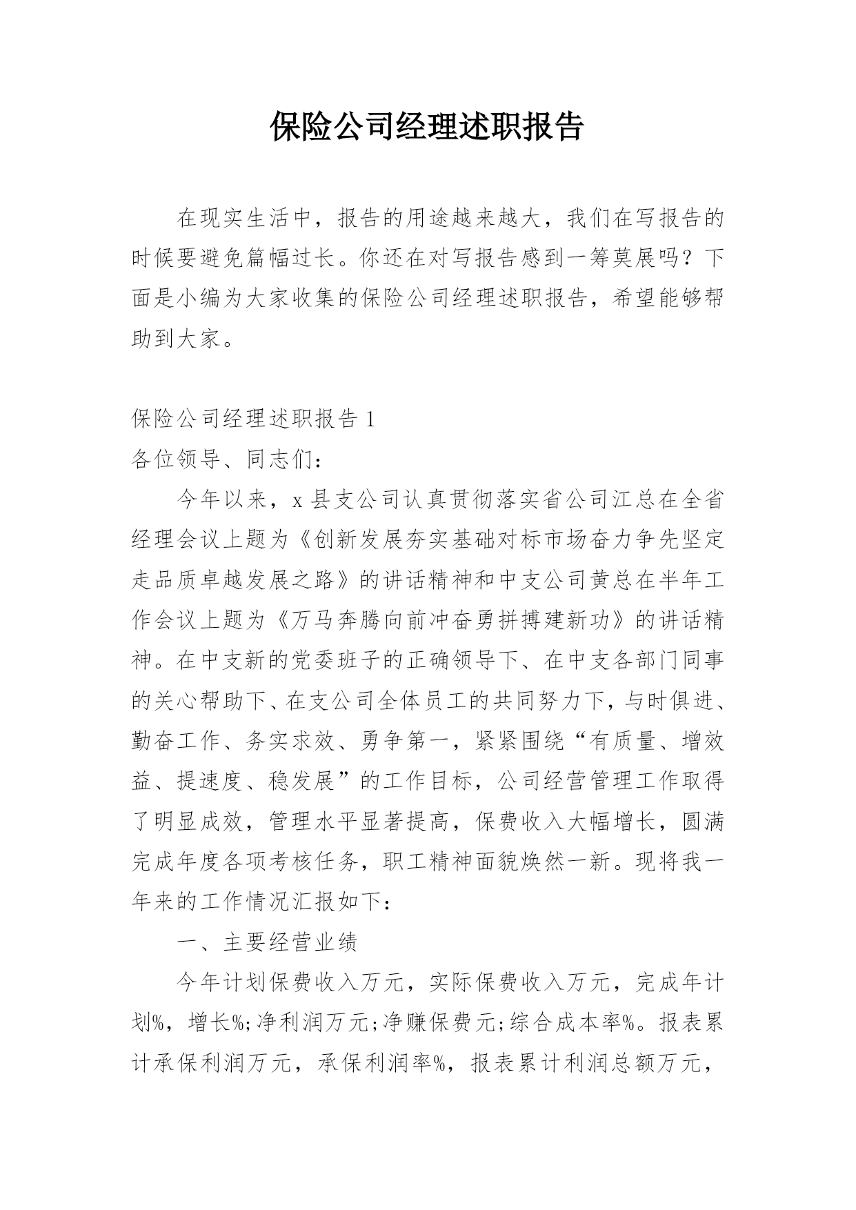 保险公司经理述职报告在现实生活中,报告的用途越来越大,我们在写报告的时候要避免篇幅过长。你还在对写报告感到一筹莫展吗?下面是小编为大家收集的保险公司经理述职报告,希望能够帮助到大家。保险公司经理述职报告1各位领导、同志们:今年以来,x县支公司认真贯彻落实省公司江总在全省经理会议上题为《创新发展夯实基础对标市场奋力争先坚定走品质卓越发展之路》的讲话精神和中支公司黄总在半年工作会议上题为《万马奔腾向前冲奋勇拼搏建新功》的讲话精神。在中支新的党委班子的正确领导下、在中支各部门同事的关心帮助下、在支公司全体员工的