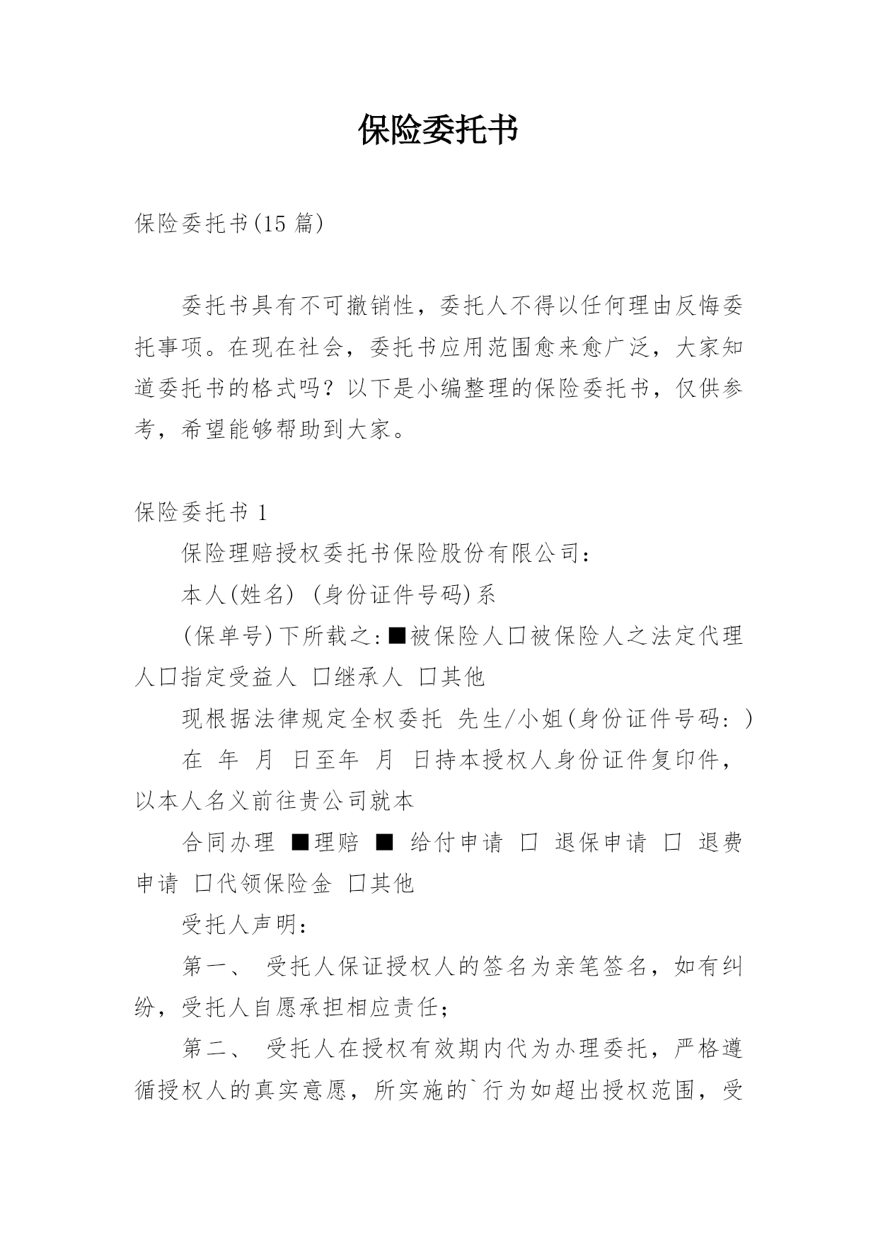 保险委托书编辑精选.docx