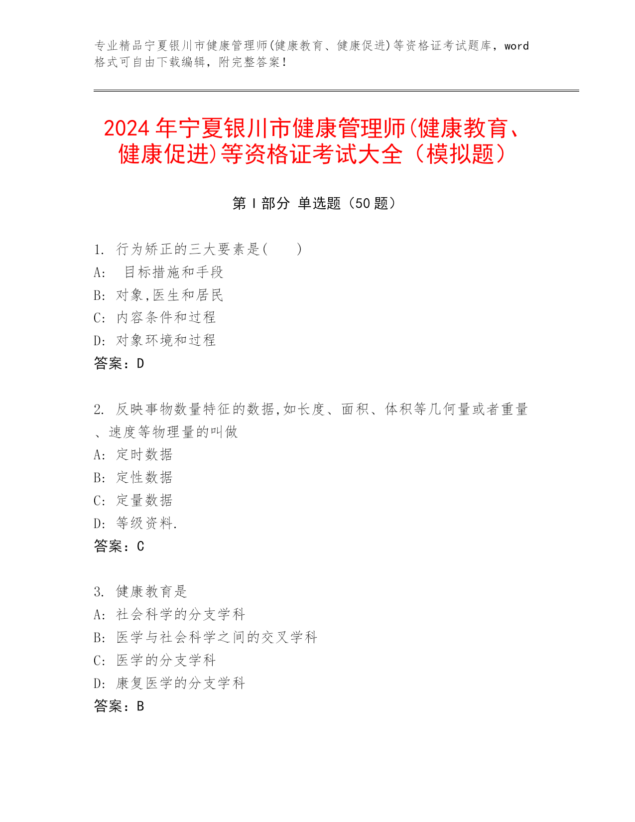 2024年宁夏银川市健康管理师(健康教育、健康促进)等资格证考试大全(模拟题).docx