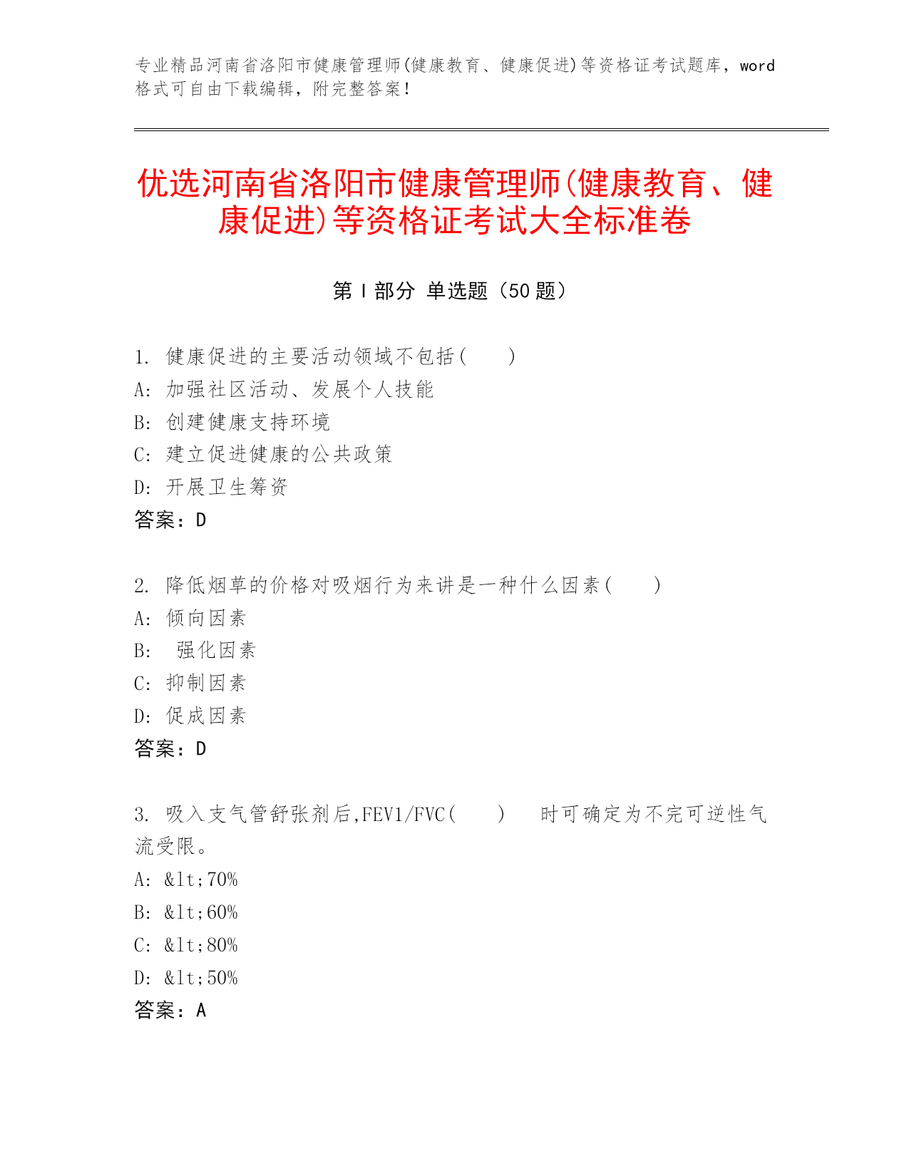 优选河南省洛阳市健康管理师(健康教育、健康促进)等资格证考试大全标准卷.docx