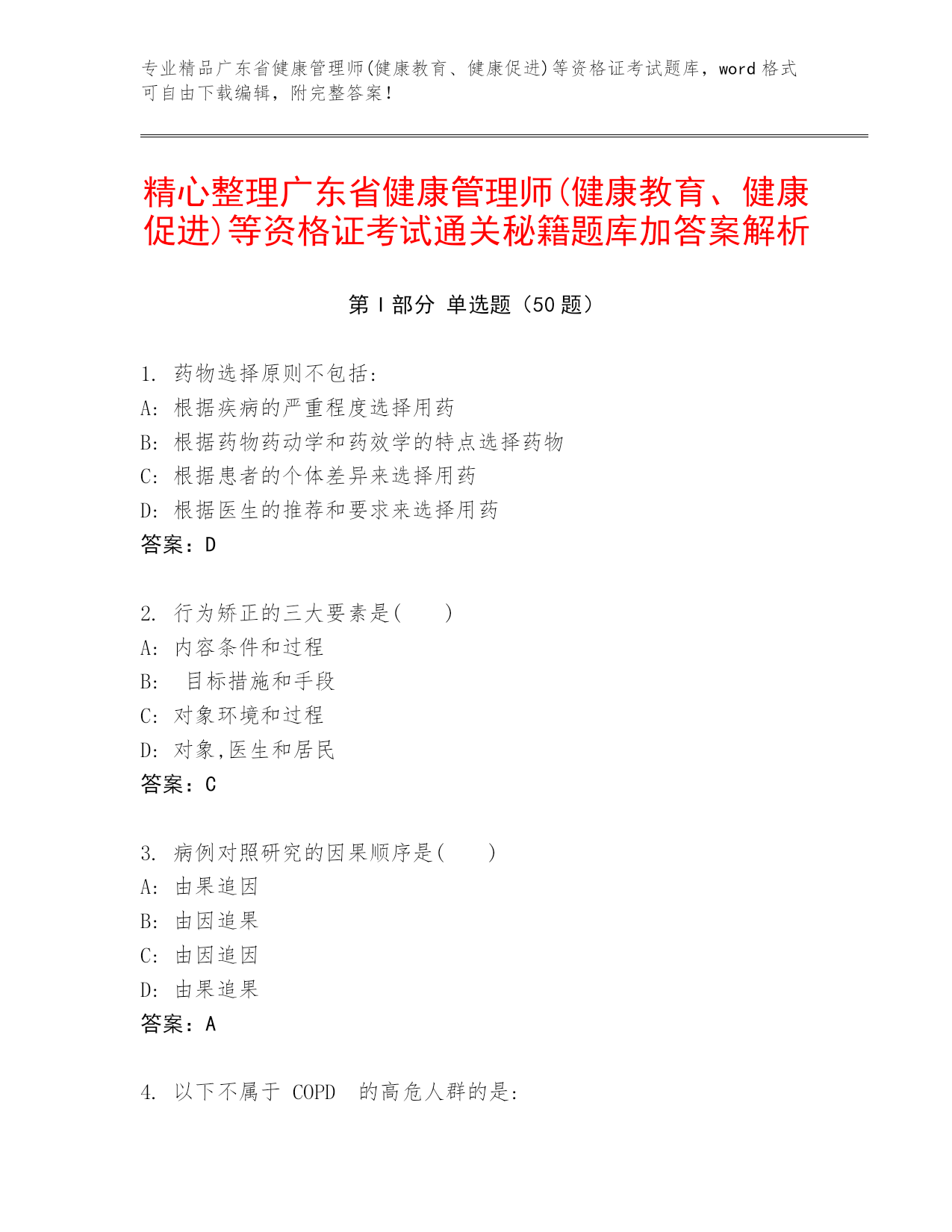 精心整理广东省健康管理师(健康教育、健康促进)等资格证考试通关秘籍题库加答案解析.docx