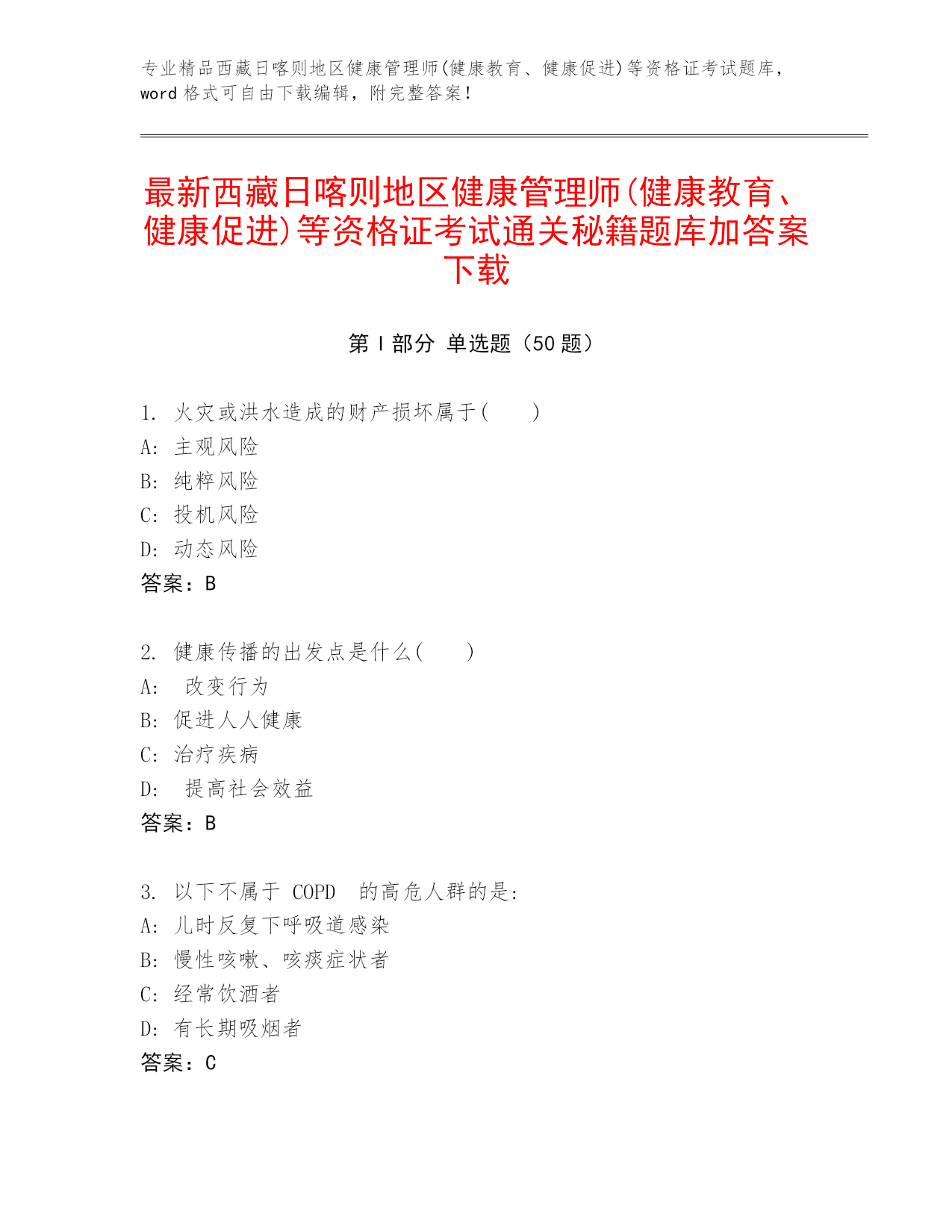最新西藏日喀则地区健康管理师(健康教育、健康促进)等资格证考试通关秘籍题库加答案下载.docx