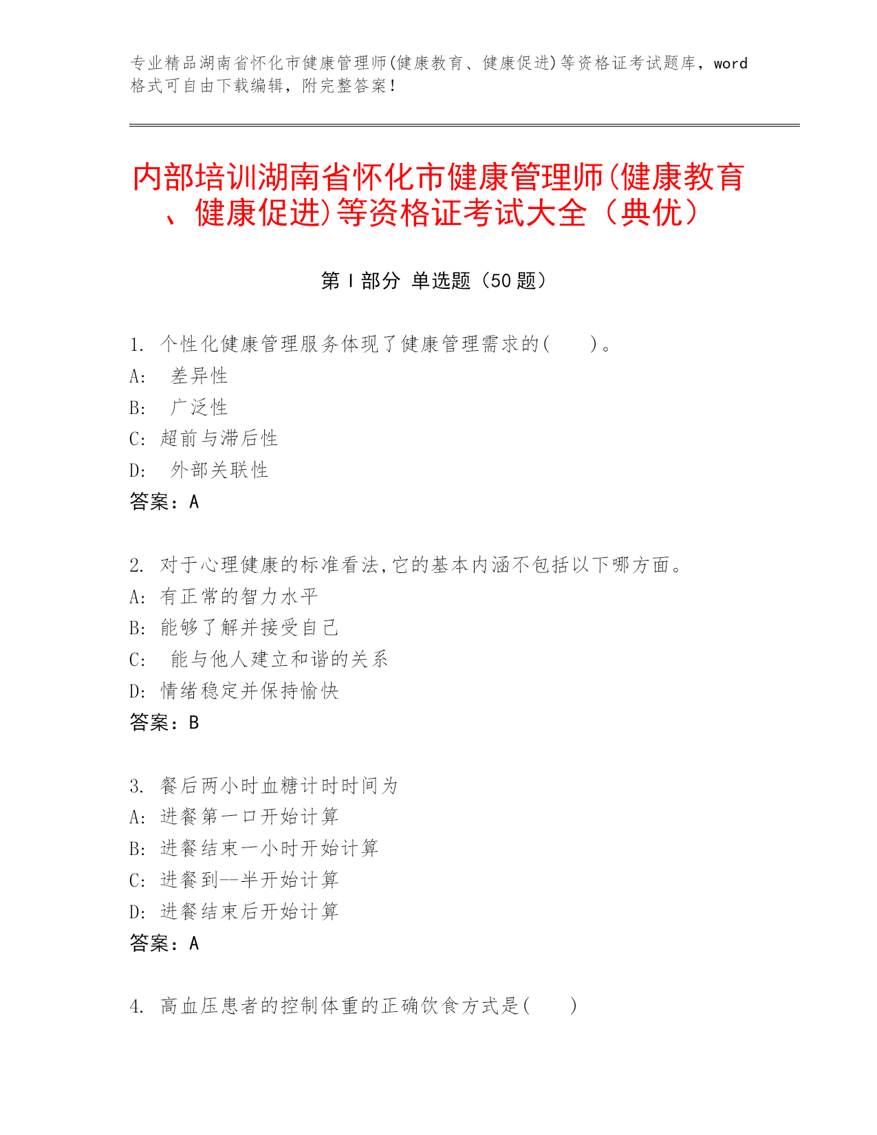 内部培训湖南省怀化市健康管理师(健康教育、健康促进)等资格证考试大全(典优).docx