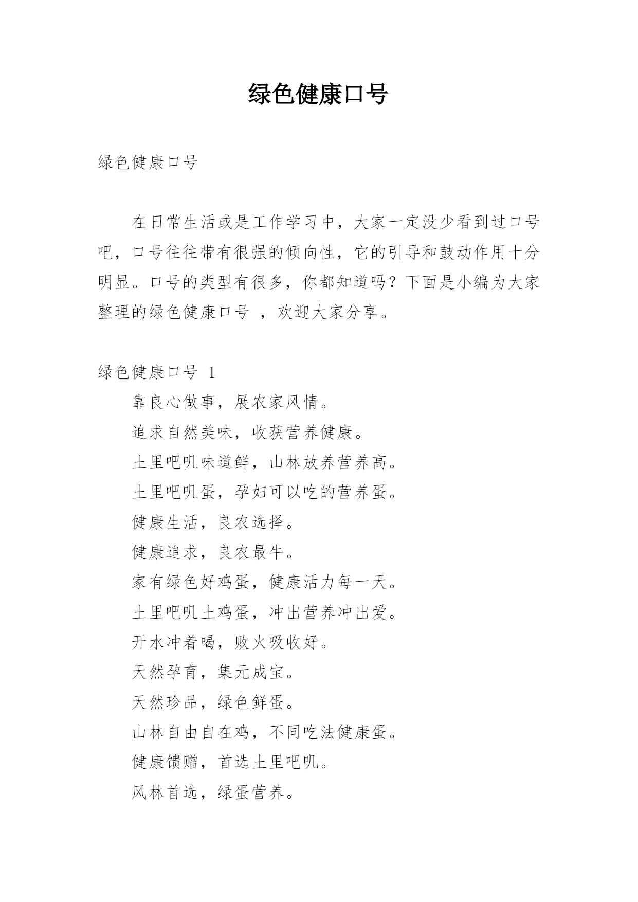 绿色健康口号绿色健康口号在日常生活或是工作学习中,大家一定没少看到过口号吧,口号往往带有很强的倾向性,它的引导和鼓动作用十分明显。口号的类型有很多,你都知道吗?下面是小编为大家整理的绿色健康口号,欢迎大家分享。绿色健康口号1靠良心做事,展农家风情。追求自然美味,收获营养健康。土里吧叽味道鲜,山林放养营养高。土里吧叽蛋,孕妇可以吃的营养蛋。健康生活,良农选择。健康追求,良农最牛。家有绿色好鸡蛋,健康活力每一天。土里吧叽土鸡蛋,冲出营养冲出爱。开水冲着喝,败火吸收好。天然孕育,集元成宝。天然珍品,绿色鲜蛋。山