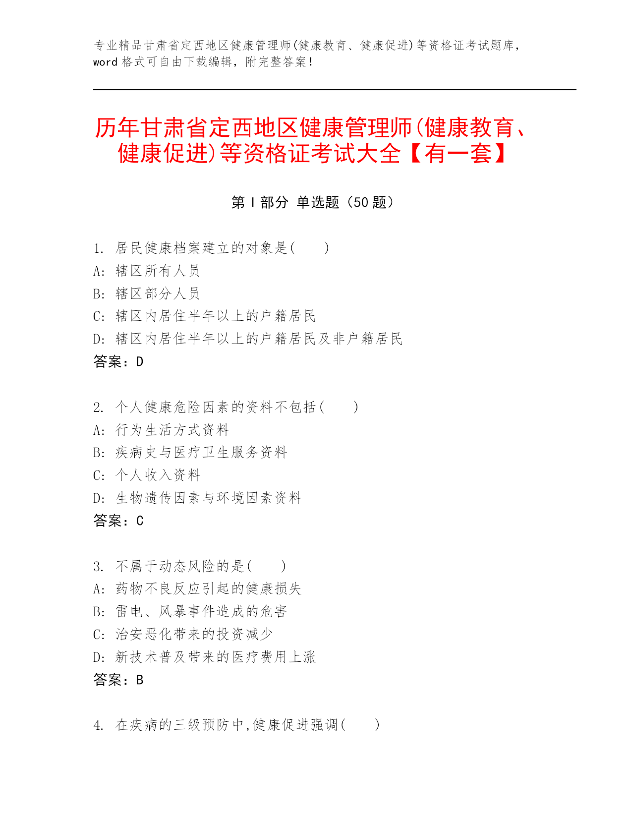 历年甘肃省定西地区健康管理师(健康教育、健康促进)等资格证考试大全【有一套】.docx