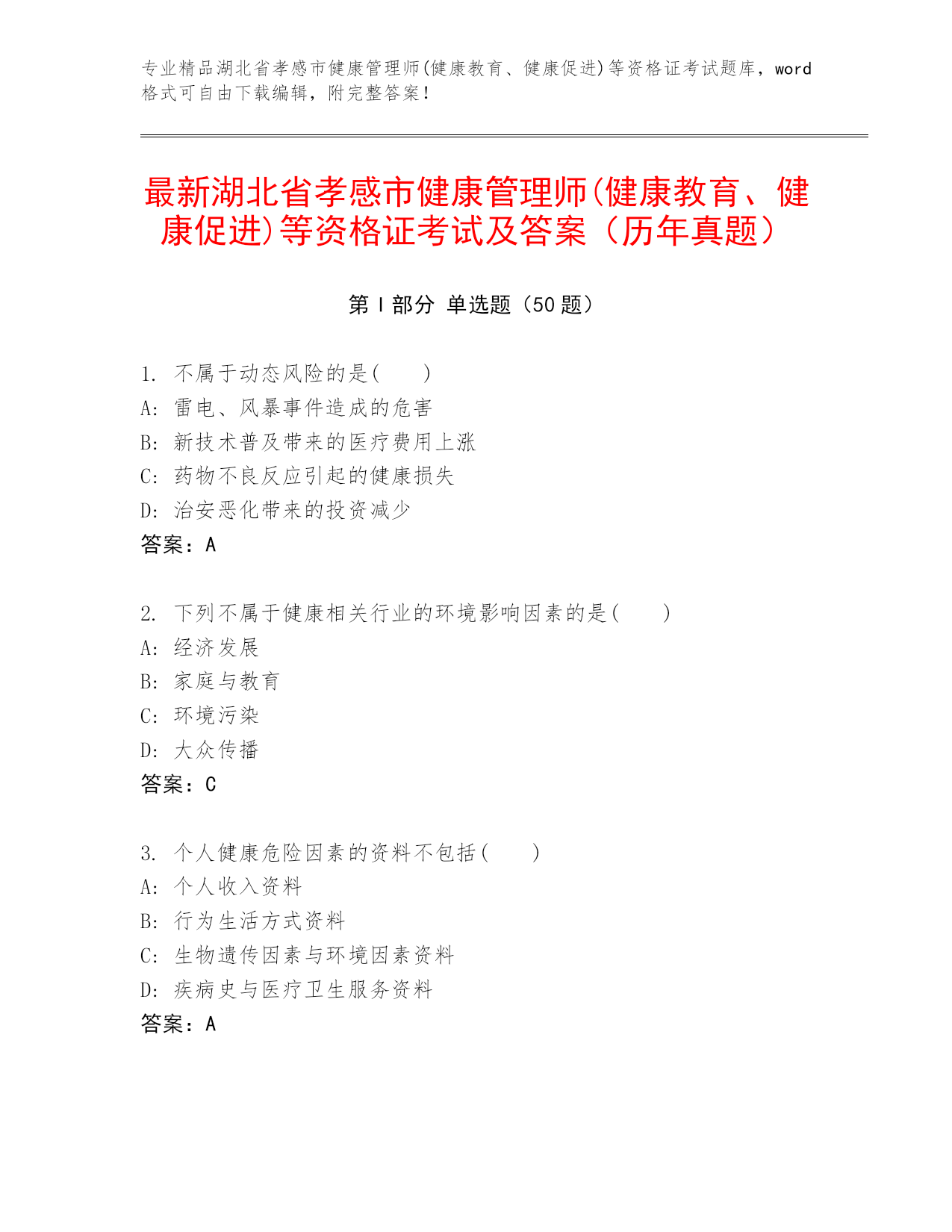 最新湖北省孝感市健康管理师(健康教育、健康促进)等资格证考试及答案(历年真题).docx