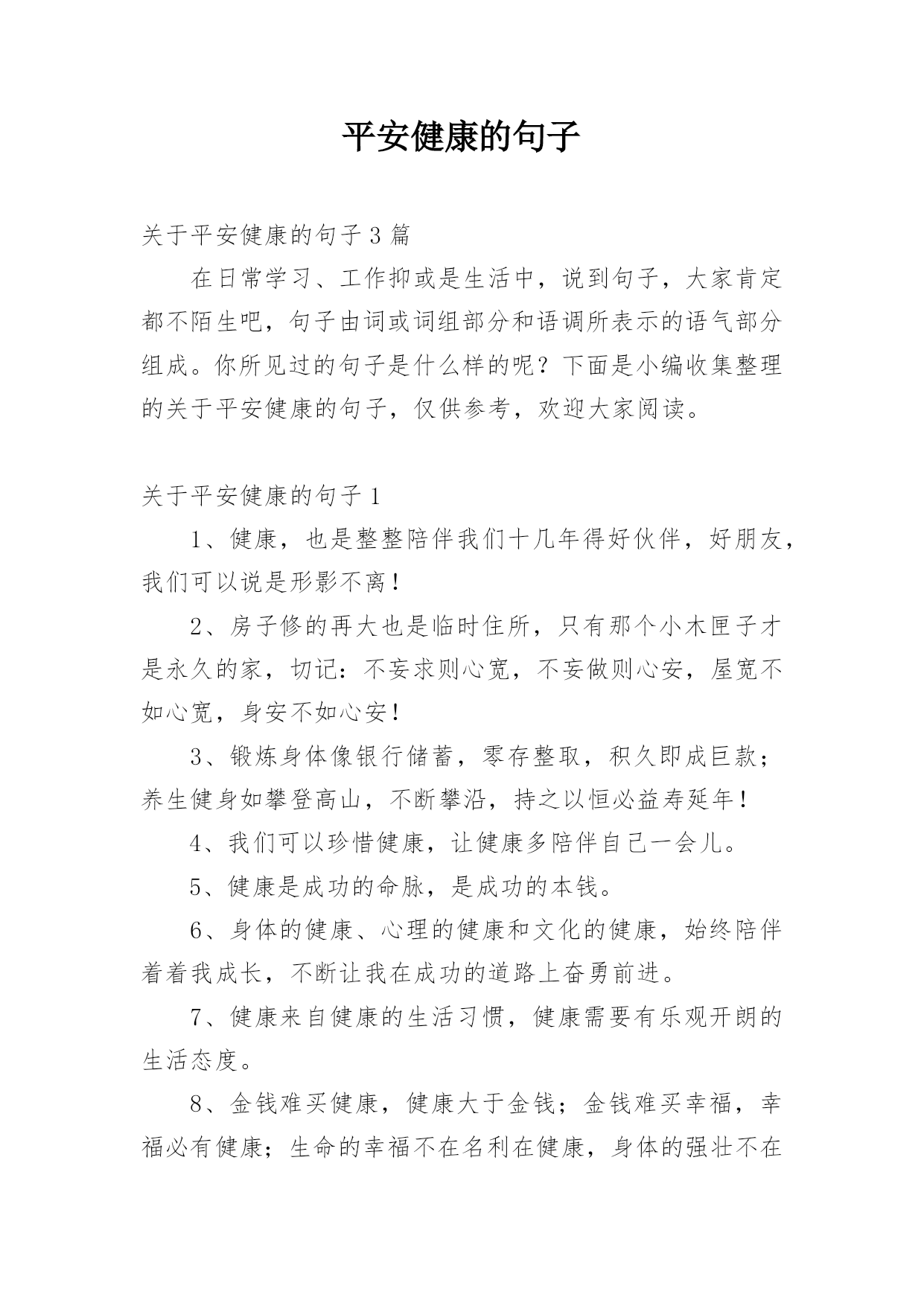 平安健康的句子.docx