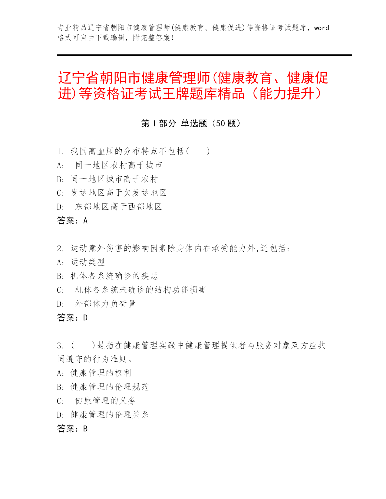 辽宁省朝阳市健康管理师(健康教育、健康促进)等资格证考试王牌题库精品(能力提升).docx