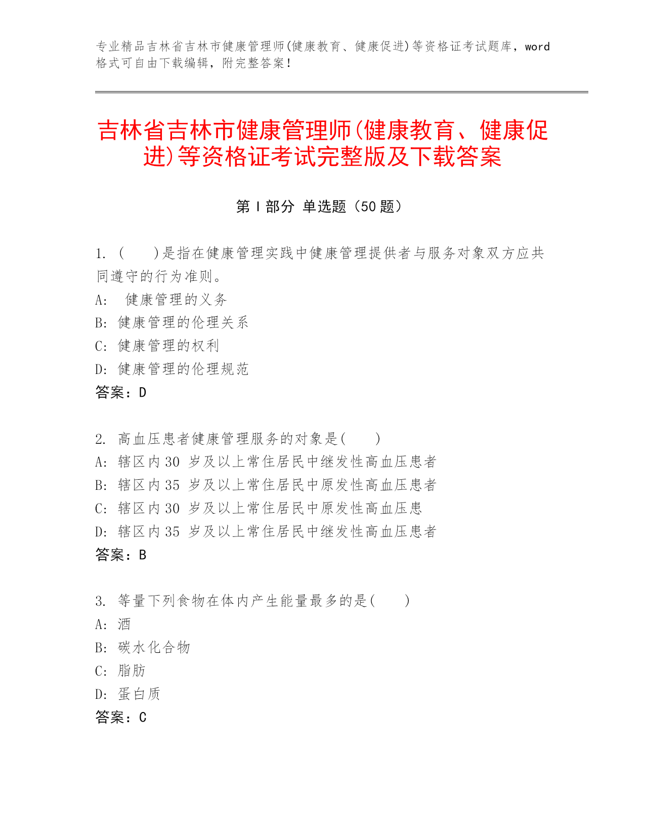 吉林省吉林市健康管理师(健康教育、健康促进)等资格证考试完整版及下载答案.docx