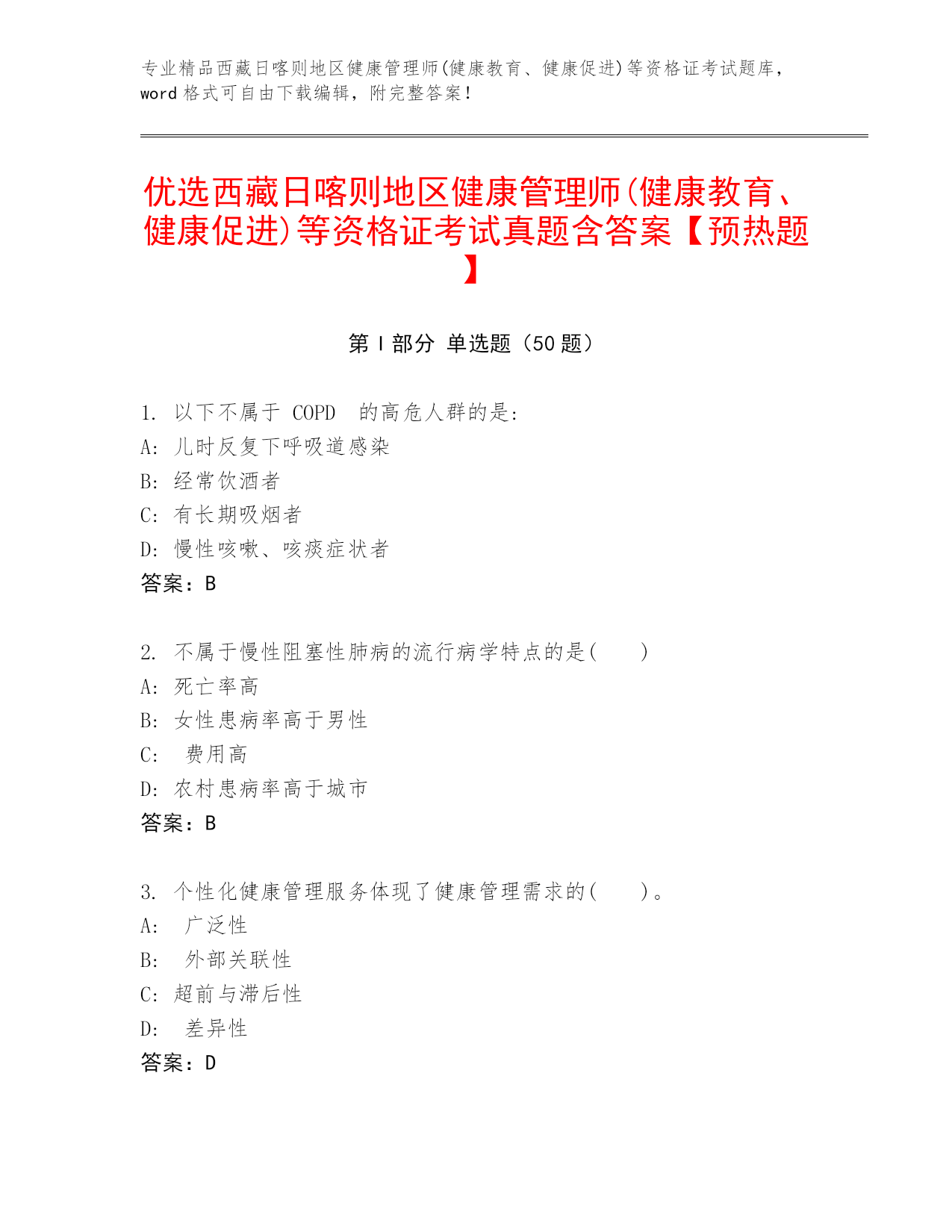 优选西藏日喀则地区健康管理师(健康教育、健康促进)等资格证考试真题含答案【预热题】.docx