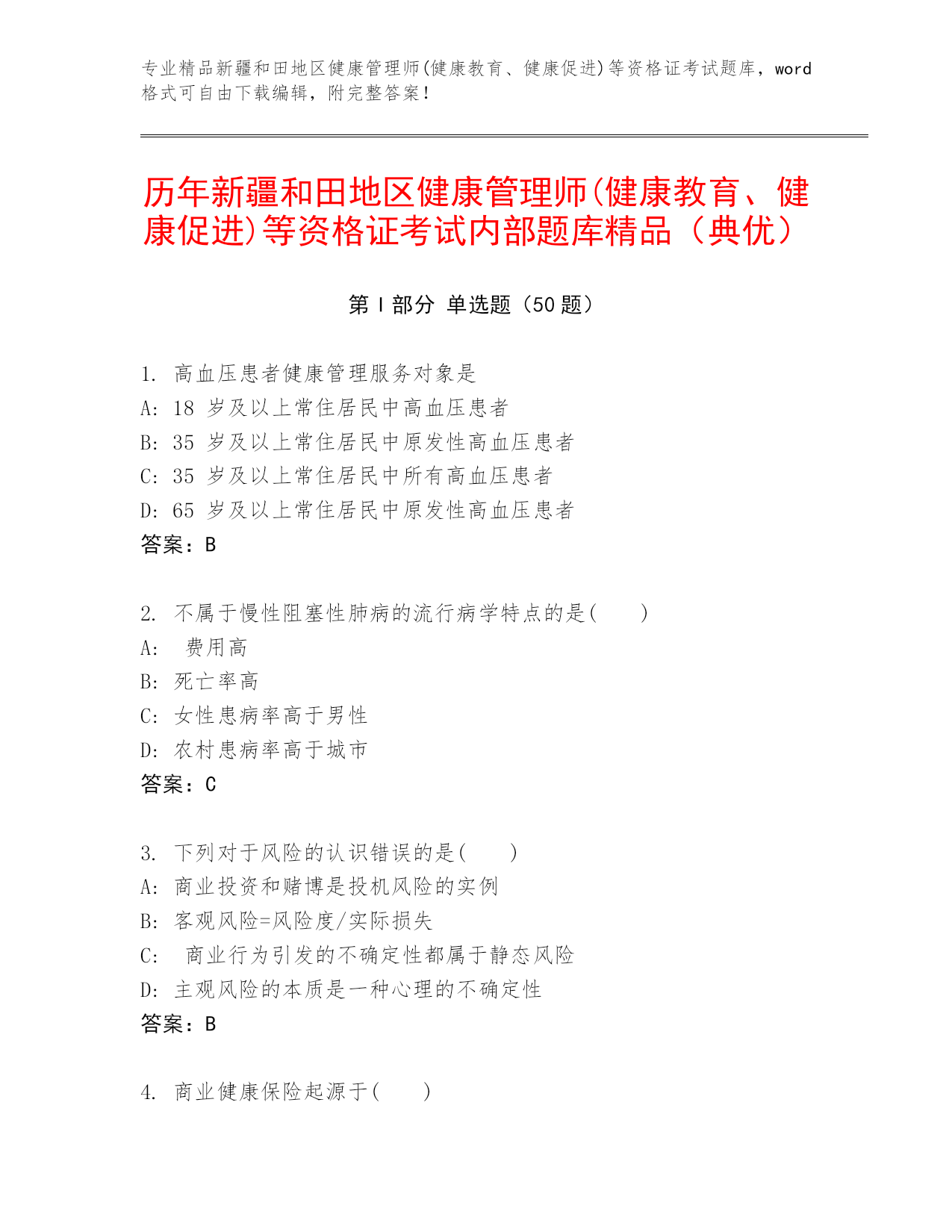 历年新疆和田地区健康管理师(健康教育、健康促进)等资格证考试内部题库精品(典优).docx